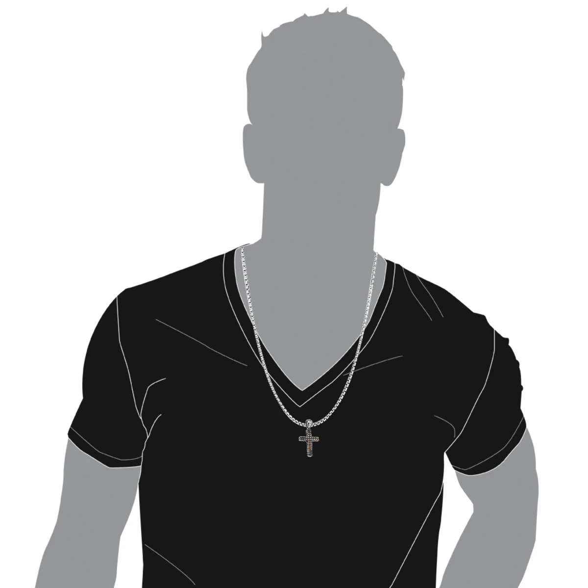 10K Black Plated Gold Black & Cognac Diamond Cross Pendant For Men 1.5ct By Luxurman