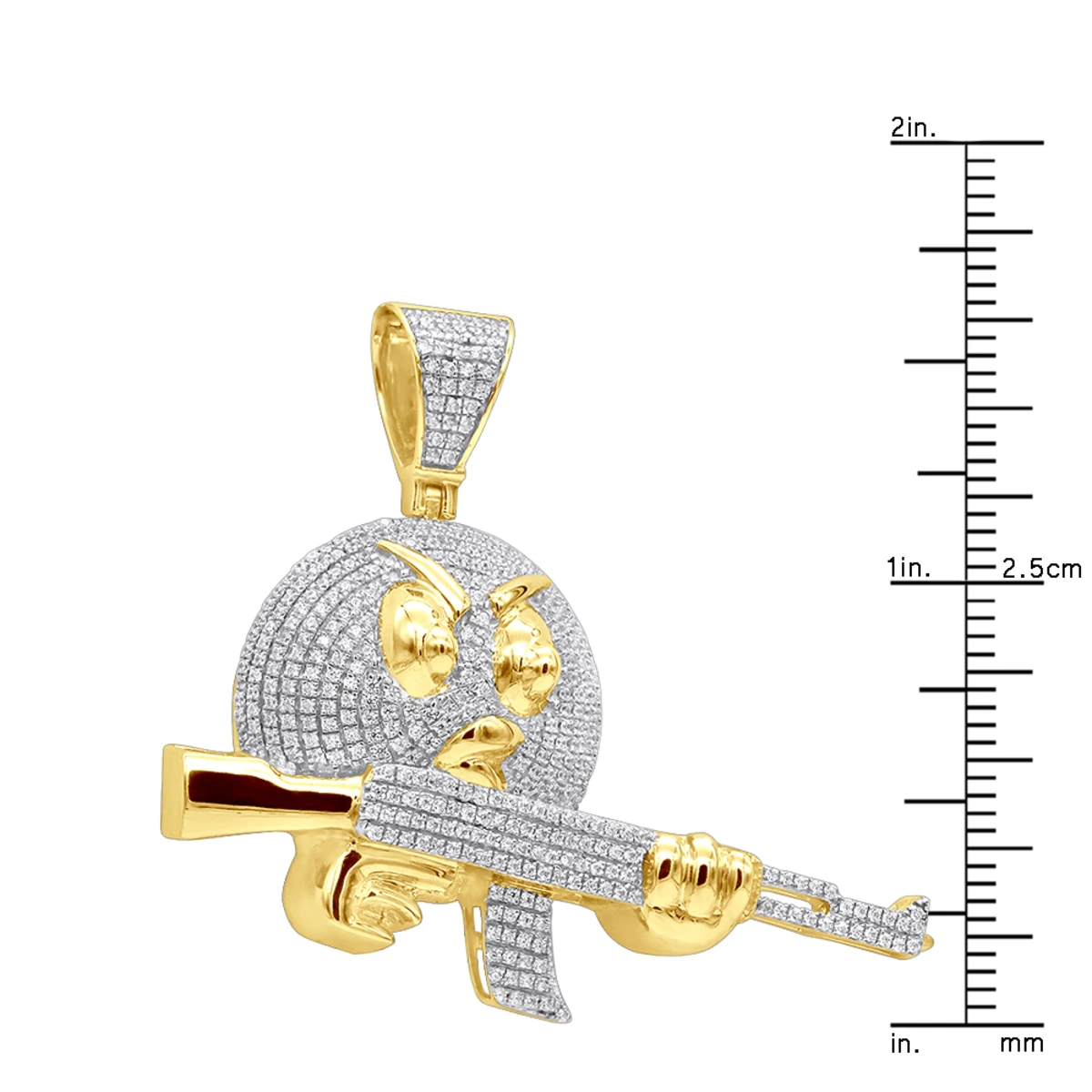10K Yellow Gold Angry Emoji With AK47 Machine Gun Pendant With Diamonds 1.2ct