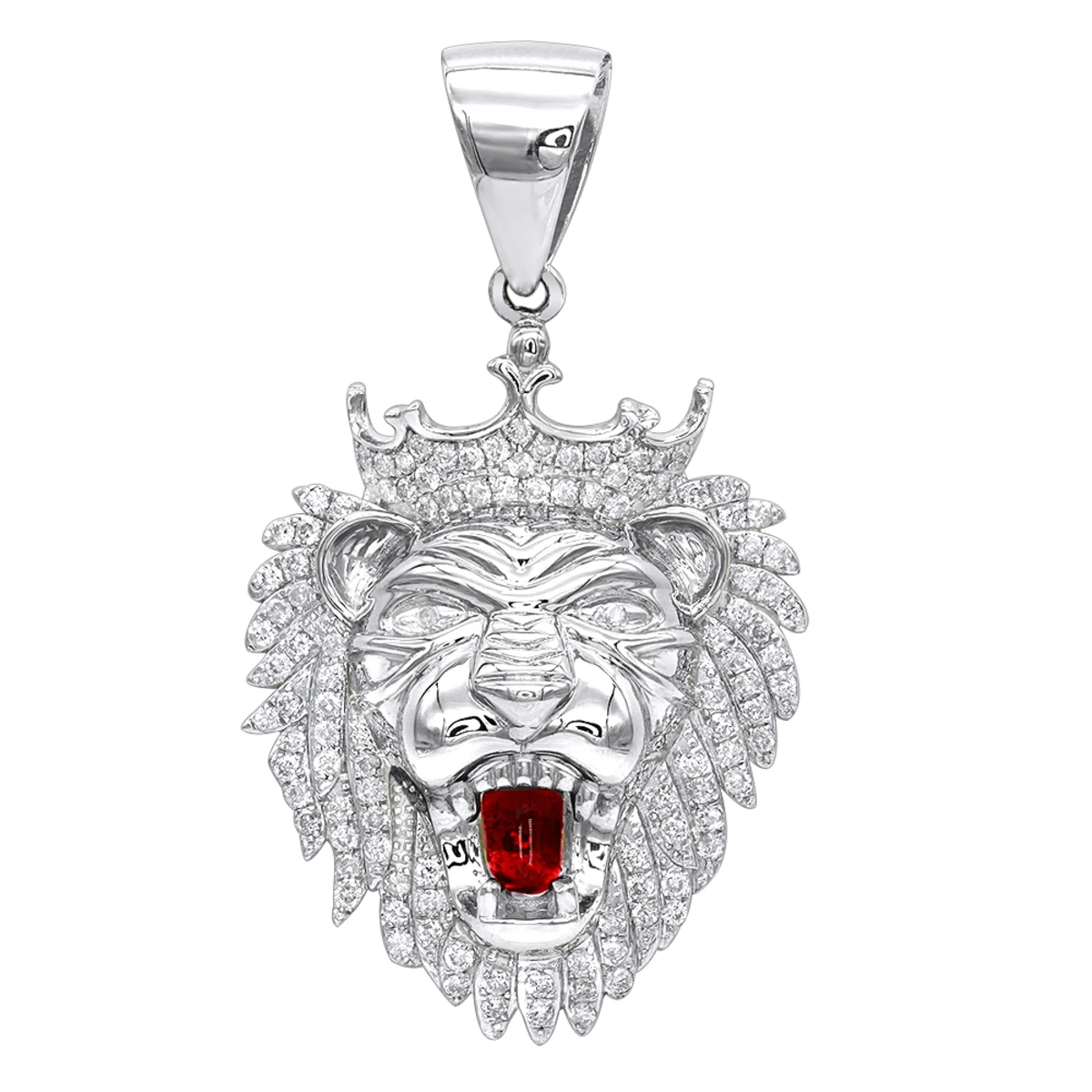 LUXURMAN Charms: This stylish Solid 10K Gold Diamond King Lion Head Pendant for Men Luxurman weighs approximately 11 grams and showcases 1.2 carats of sparkling round cut genuine diamonds set into lions mane and a crown. This luxurious men’s diamond pendant has a very masculine design of a lions head with a crown, amazing detail and decorated with red enamel. This beautiful lion head diamond pendant for men is available in 10K yellow gold, white gold and pink gold. You also can personalize this piece or check we’ve already made and create your own design.