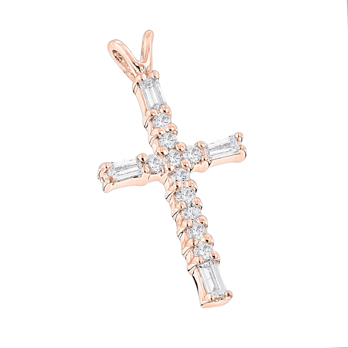 This Baguette Cut & Round Diamond cross necklace features 0.35 carats of baguette cut (4 diamonds) & round diamonds (10 diamonds). This diamond cross necklace is available in Platinum, 18k or 14k yellow, rose, white gold, various sizes, and can be customized with any color and quality diamonds. Please note: it will take us 3-5 business days to make this pendant for you so please plan accordingly. Please contact us at 212-398-3123 if your size or desired option is not listed. Chain is for illustration purposes only and must be purchased separately. You also can personalize this piece or check we’ve already made and create your own design.
