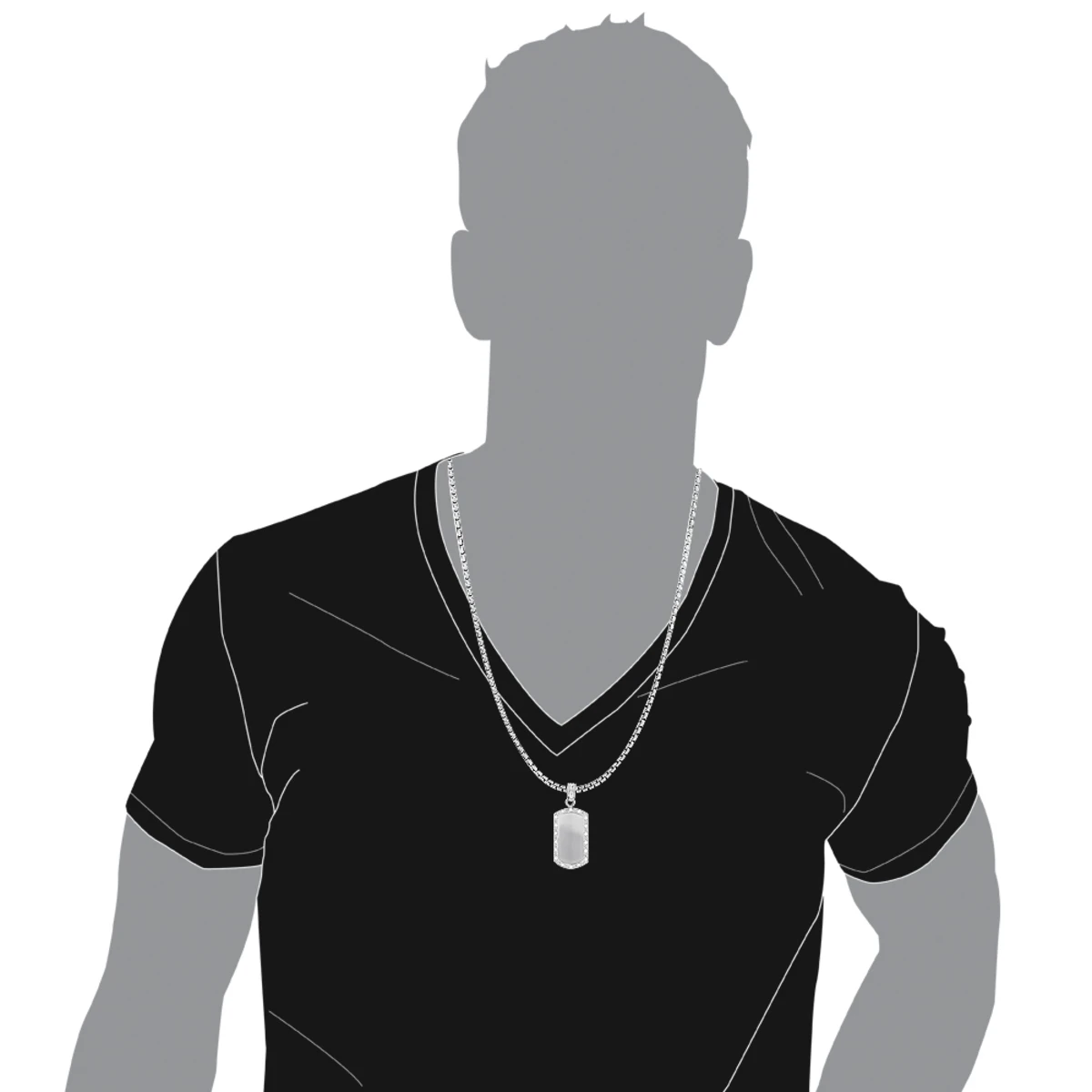 14K White Gold Diamond Dog Tag Pendant 0.22ct
