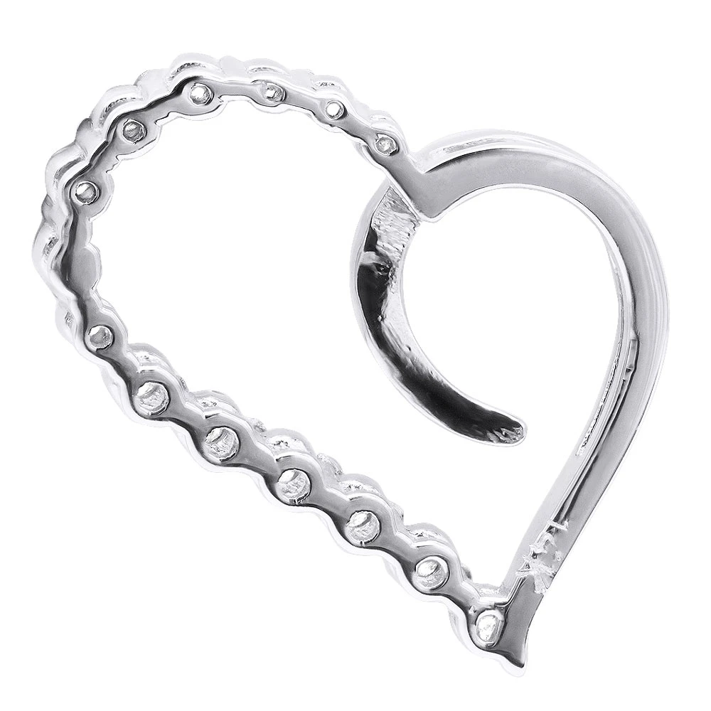 14K White Gold Diamond Small Open Heart Pendant For Women By Luxurman 0.2ct