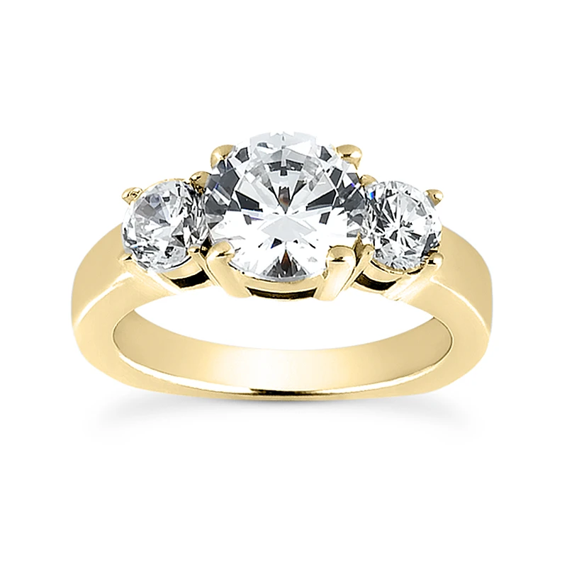 This 14K Gold Diamond Three Stone Engagement Ring showcases a 0.75 carat round diamond in the center and 0.50 carats of round diamonds on the sides for a total of 1.25 carat of dazzling diamonds and is available in Platinum, 18k or 14k yellow, rose, white gold, various sizes, and can be customized with any color and quality diamonds. Center diamond can be from 0.75ct to 2ct (gold weight and number of stones may vary). Please note: it will take us 3-5 business days to make this ring for you so please plan accordingly. Please contact us at 212-398-3123 if your size or desired option is not listed.