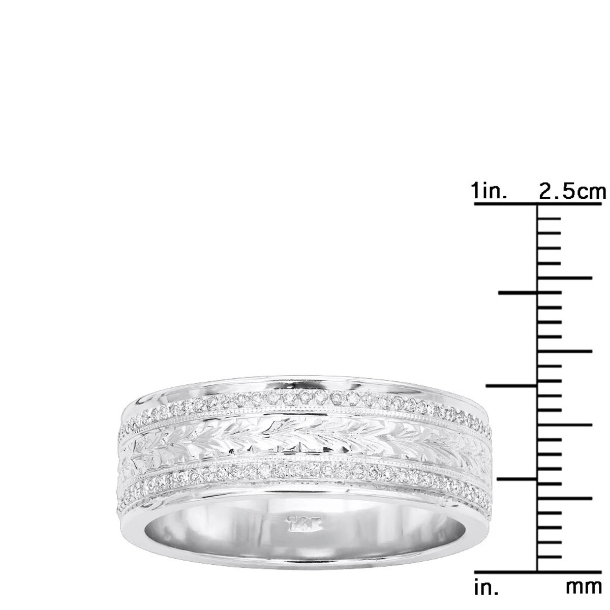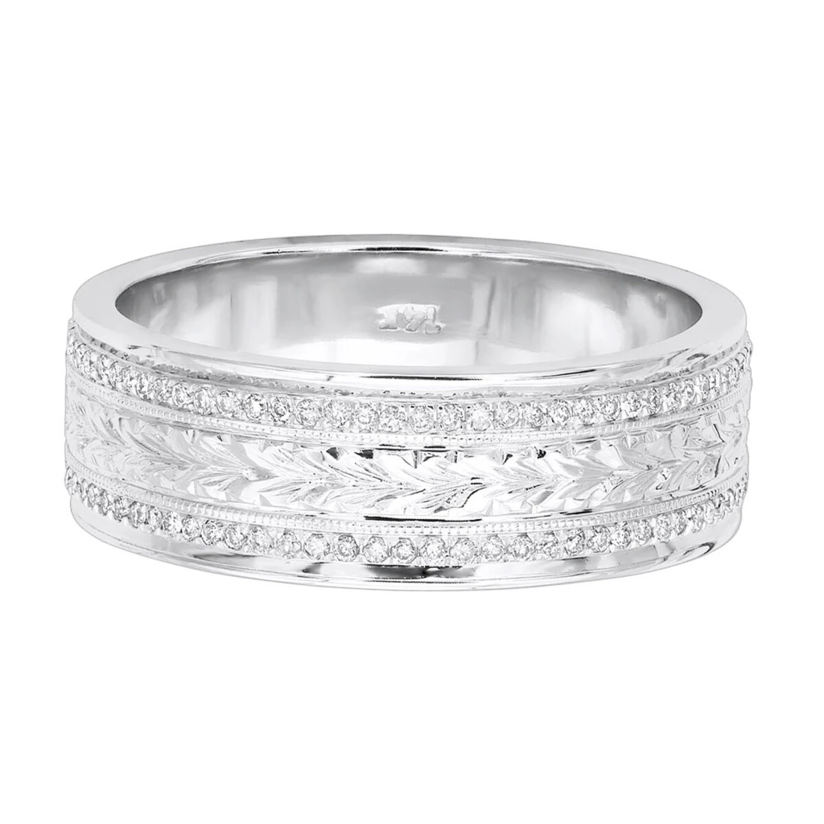 14K White Gold Eternity Diamond Wedding Band For Men & Women Unique Ornamented Ring