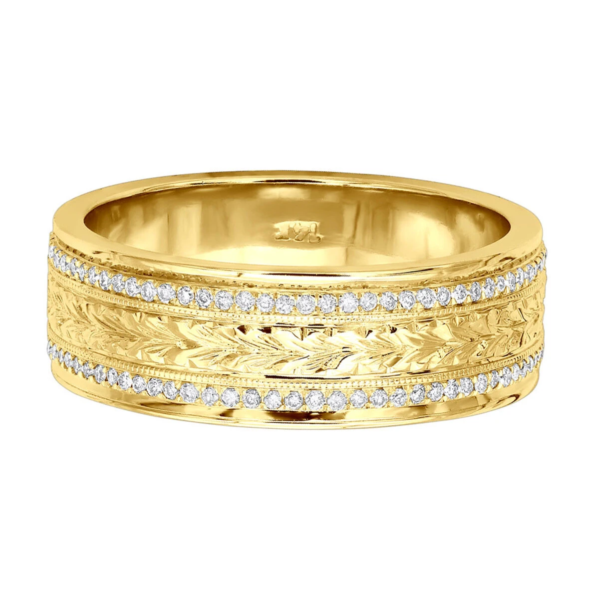 Be the first to review “14K White Gold Eternity Diamond Wedding Band For Men & Women Unique Ornamented Ring” Cancel reply