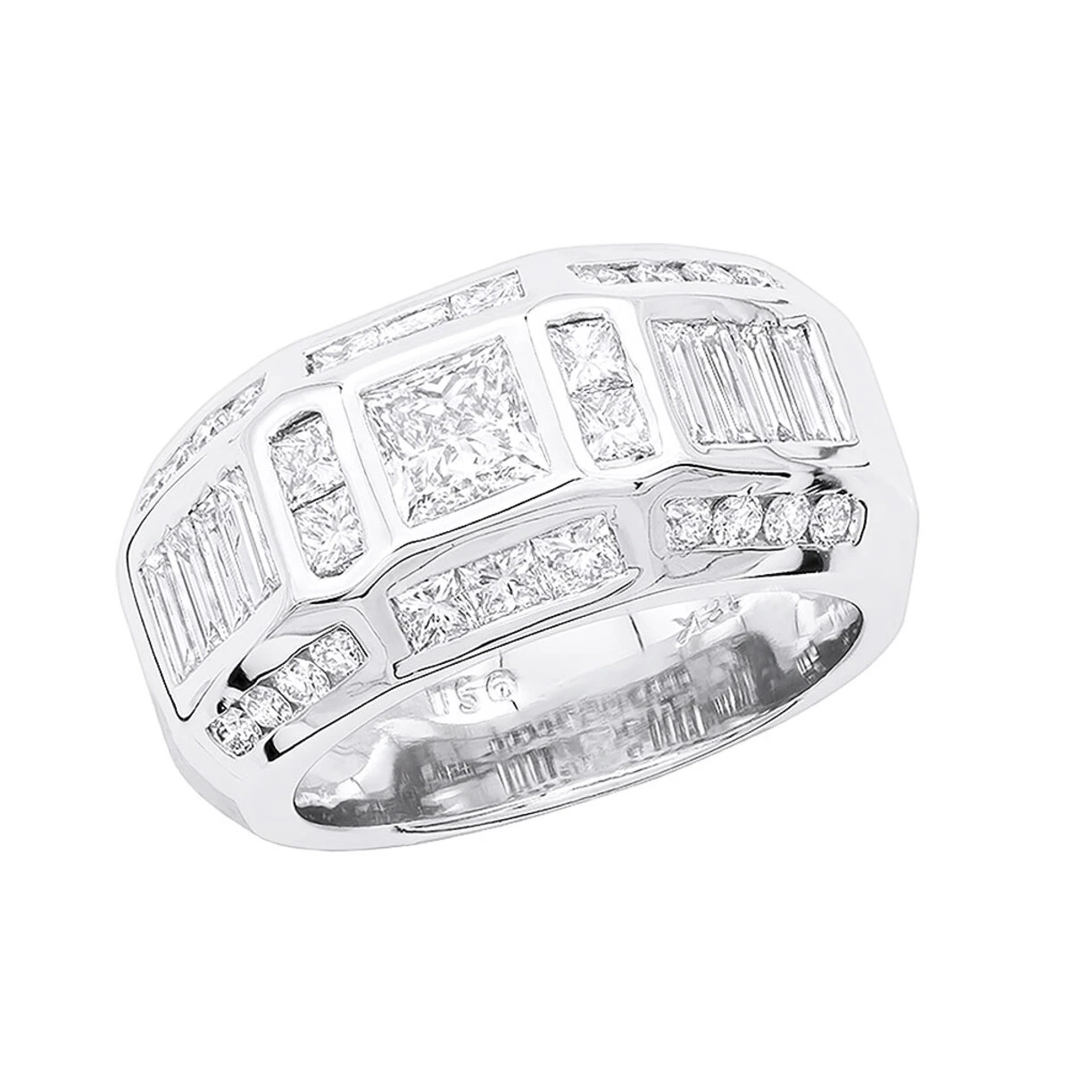 This Men’s Diamond Ring features 3.53 carats of round, princess & baguette diamonds. This men’s diamond ring is available in Platinum, 18k or 14k yellow, rose, white gold, various sizes, and can be customized with any color and quality diamonds. Please note: it will take us 3-5 business days to make this ring for you so please plan accordingly. Please contact us at 212-398-3123 if your size or desired option is not listed.