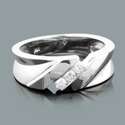 14K White Gold Men’s Diamond Wedding Ring 0.30ct 7.4mm