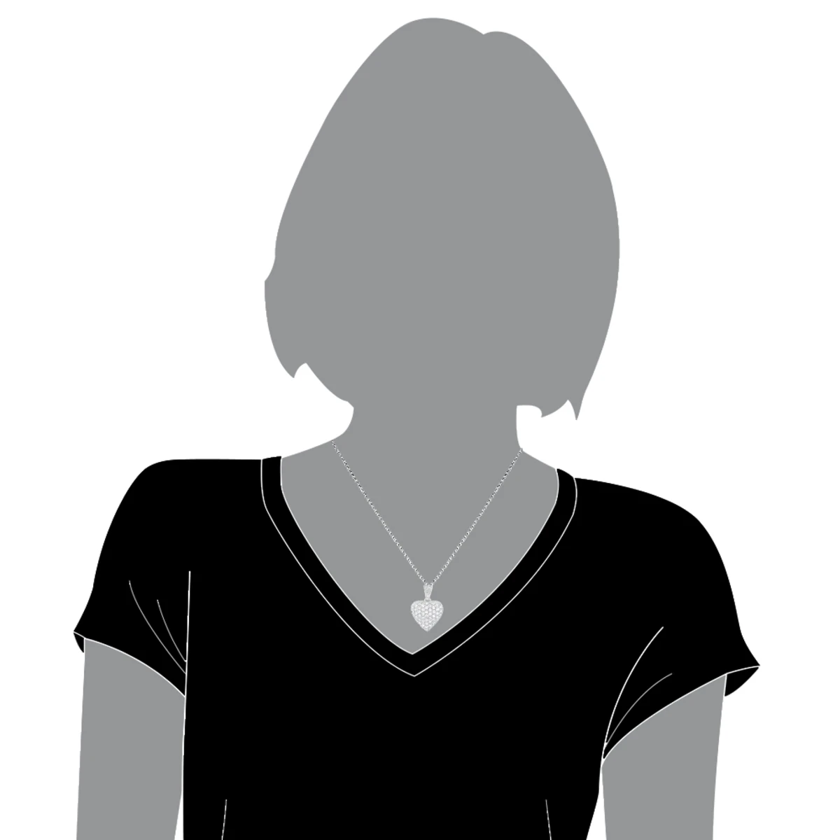 14K White Gold Pave Diamond Heart Pendant 2ct