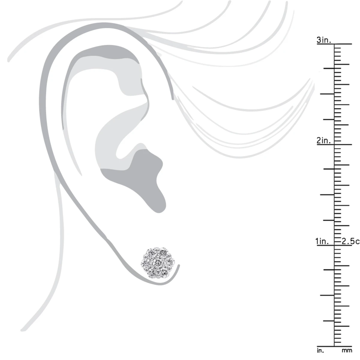 14K White Gold Prong Round Diamond Clusters Earrings 1.2ct Studs