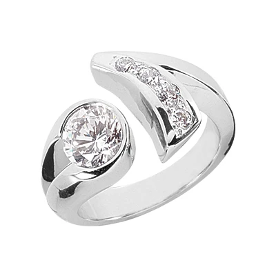 14K White Gold Round Diamond Ladies Ring 1.20ct 13.7mm