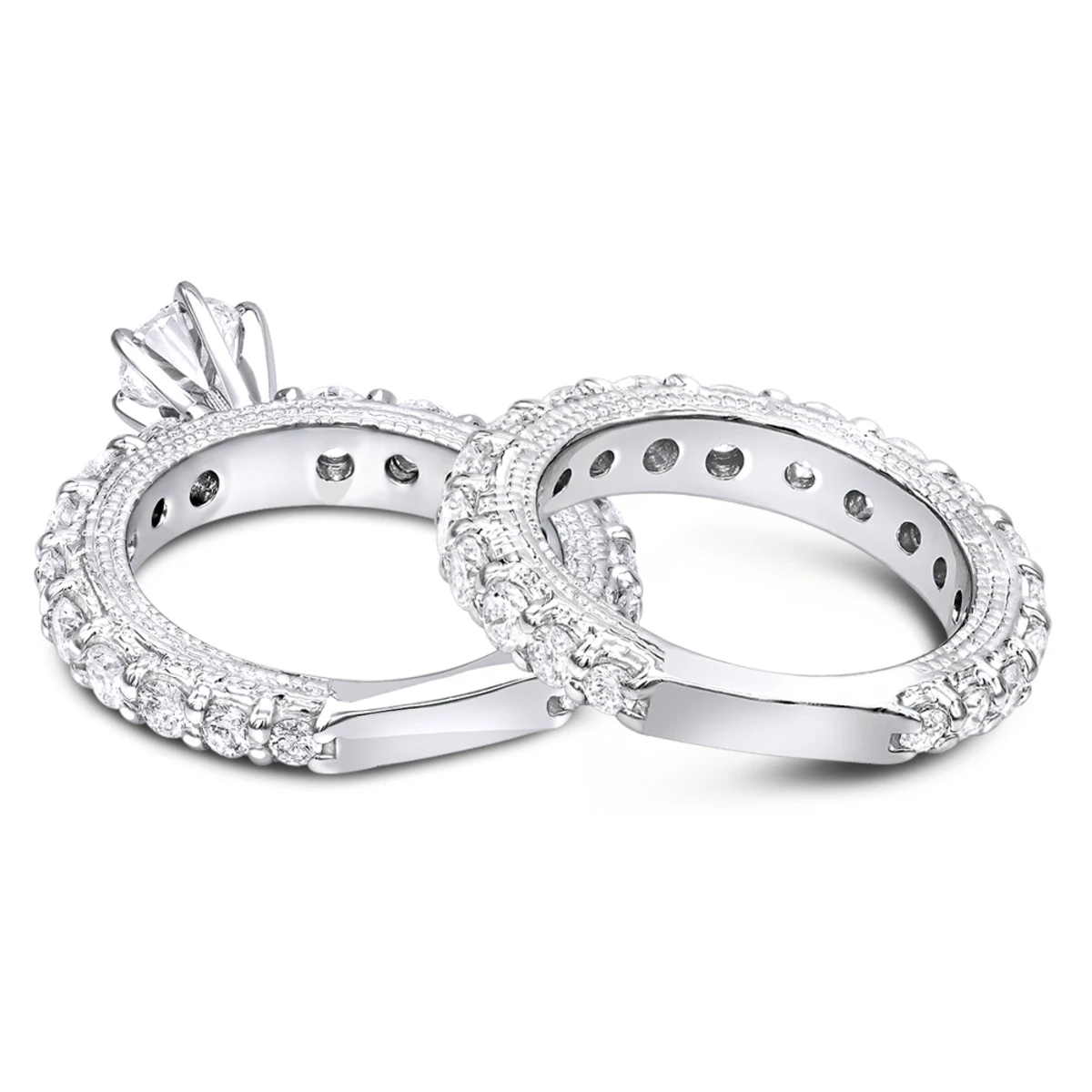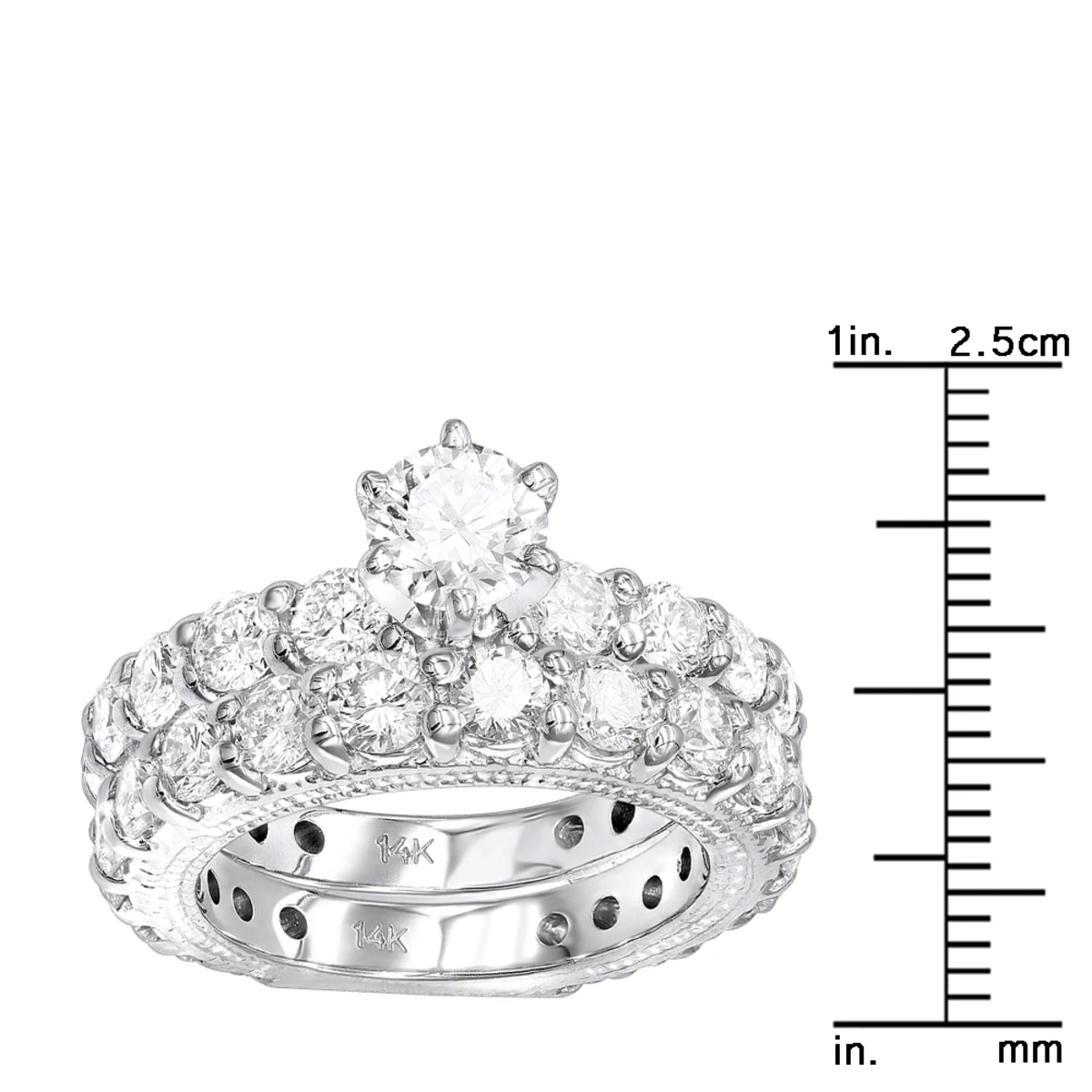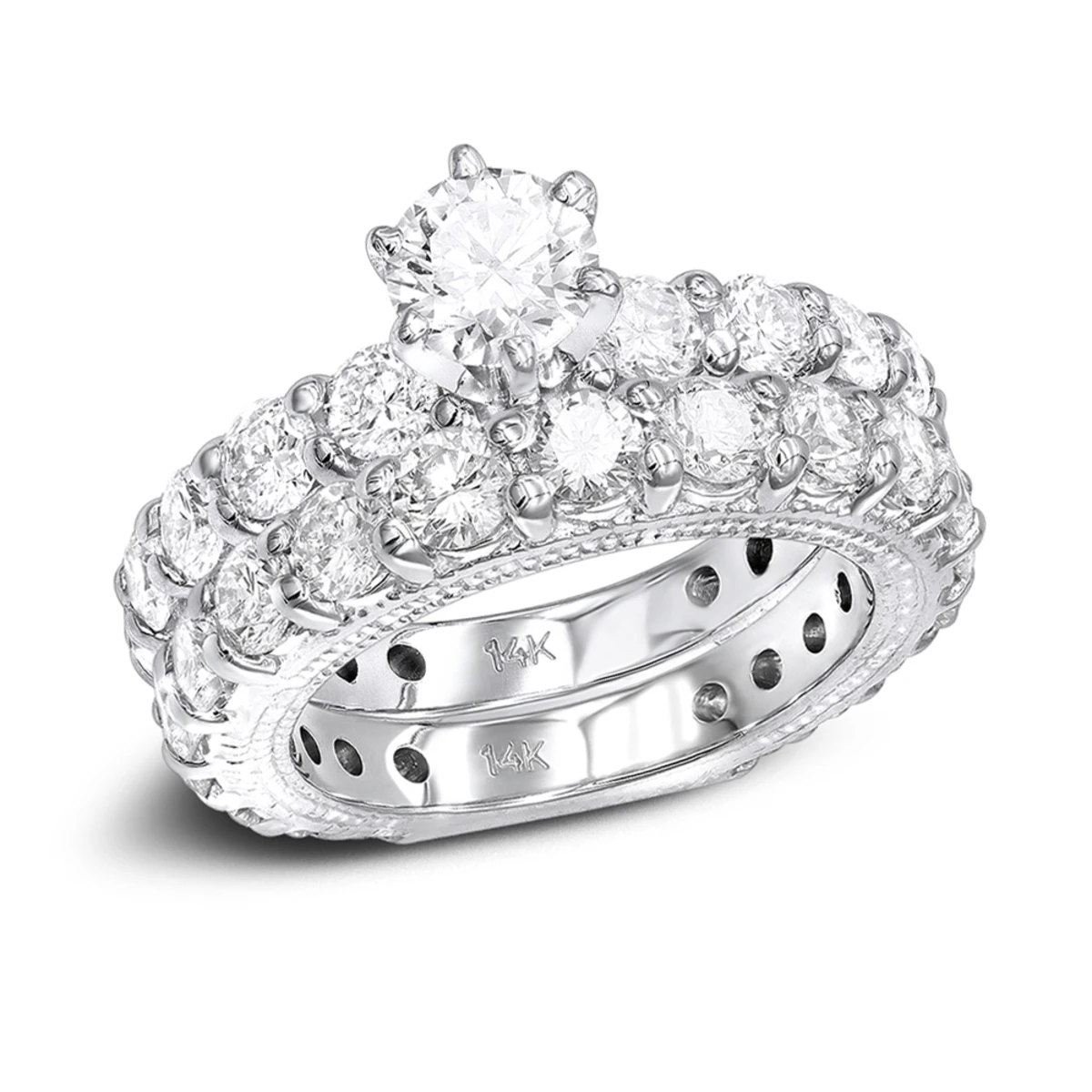 14K White Gold Unique Diamond Engagement Ring Set 4.17ct