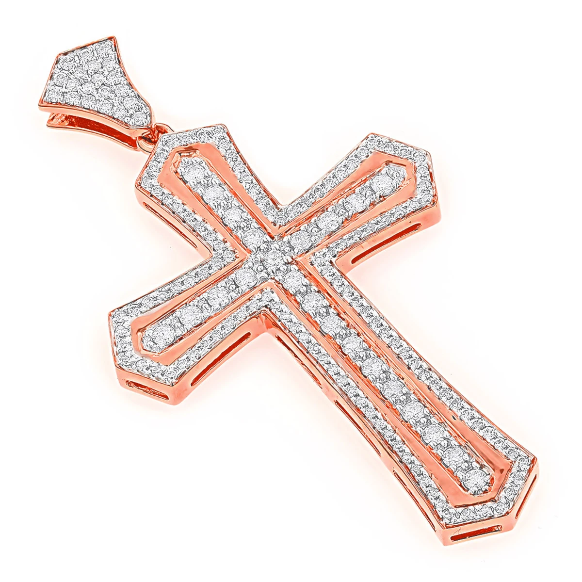 This luxurious 14K Gold Designer Diamond Cross Pendant for Men features an intricate design weighs approximately 25 grams and showcases 2.5 carats of dazzling round diamonds. This men’s diamond cross is available in 14k yellow, rose, white gold as well as 18k and Platinum as a custom option and can be customized with any color and quality diamonds. Please note: the chain is for illustration purposes only and must be purchased separately. Please contact us at 212-398-3123 if your size or desired option is not listed. You also can personalize this piece or check we’ve already made and create your own design.