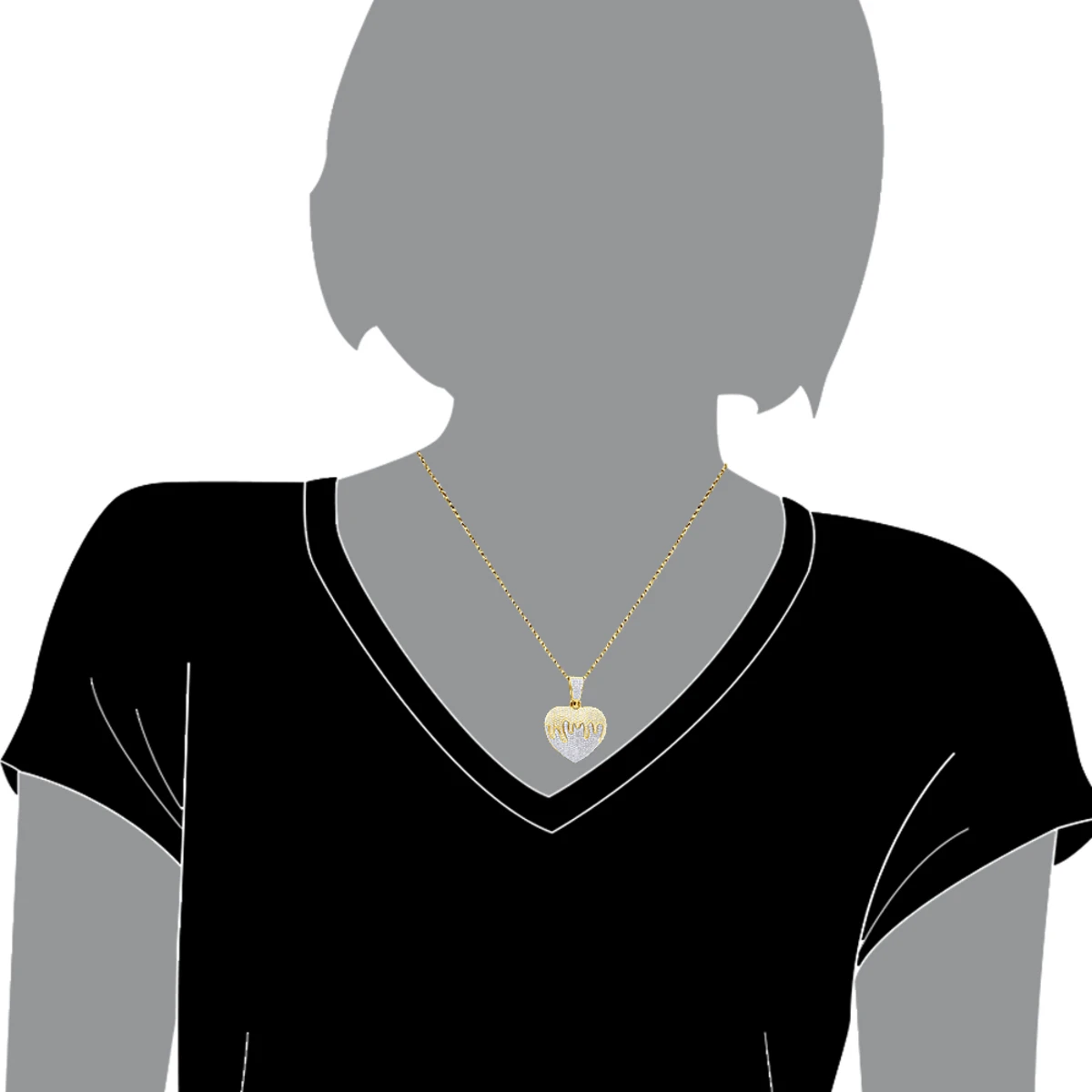 14K Yellow Gold Iced Out Dripping Heart Diamond Pendant For Women 1.3ct