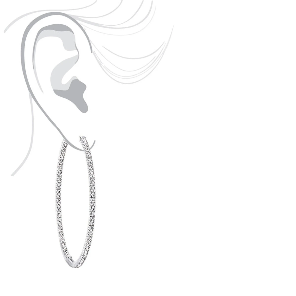 From our diamond hoop earrings for women collection: These extremely fashionable 2.5mm wide 2.5 inches in diameter Inside Out Diamond Hoop Earrings showcase remarkable 5 carats of genuine G color VS clarity white sparkling round diamonds masterfully set inside and out each earring and are simply mesmerising. These statement earrings have a flawless design and were expertly crafted to meet the highest industry standards, they are meant to be worn without any need for further jewels due to their eye-catching, attention commanding outlook. Also featuring a highly polished gold finish, these gorgeous diamond hoop earrings are available in 14K white, yellow and rose gold.