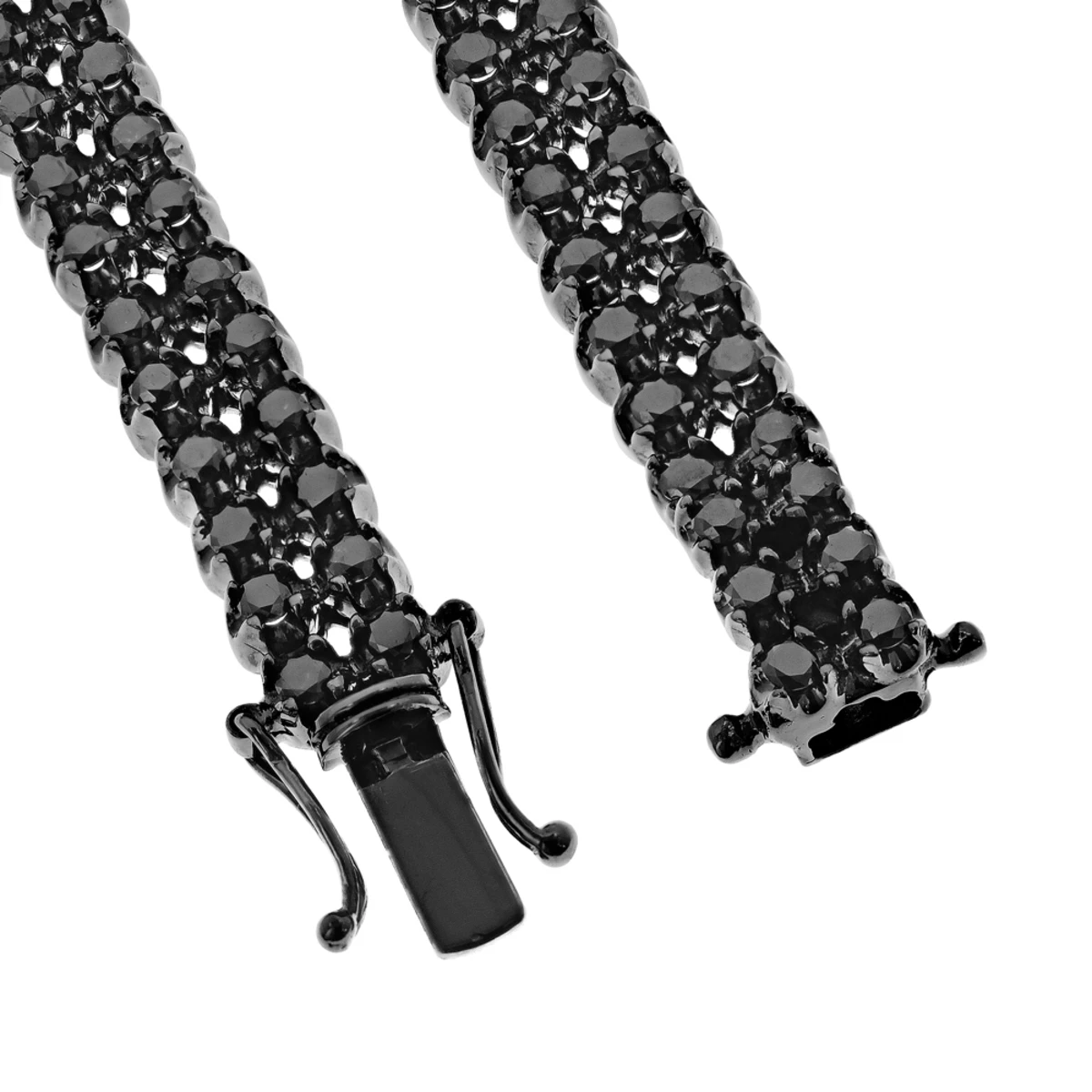 2 Row Prong Set Black Diamond Tennis Bracelet For Men In Sterling Silver 7ct