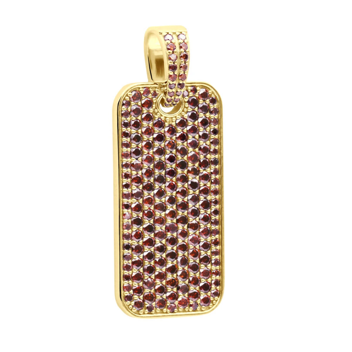 From our men’s diamond pendants collection this fully customizable red diamonds or rubies dog tag pendant in solid 14k gold weighs approximately 25 grams and showcases 7.5 carats of pave set red gemstones. Featuring an intricate back design and a highly polished gold finish this pendant is quite large at 2 inches long (5cm) and can be customized with any color diamonds or gemstones according to your specifications on a per order basis (please contact us if you would like it made with gemstones other than red diamonds or rubies). The pendant is 13/16 in (20mm) wide and 2 in (5cm) long, available in 14K white gold, yellow gold, and rose gold. Chain must be purchased separately. Order your unique dog tag today! You also can personalize this piece or check we’ve already made and create your own design.
