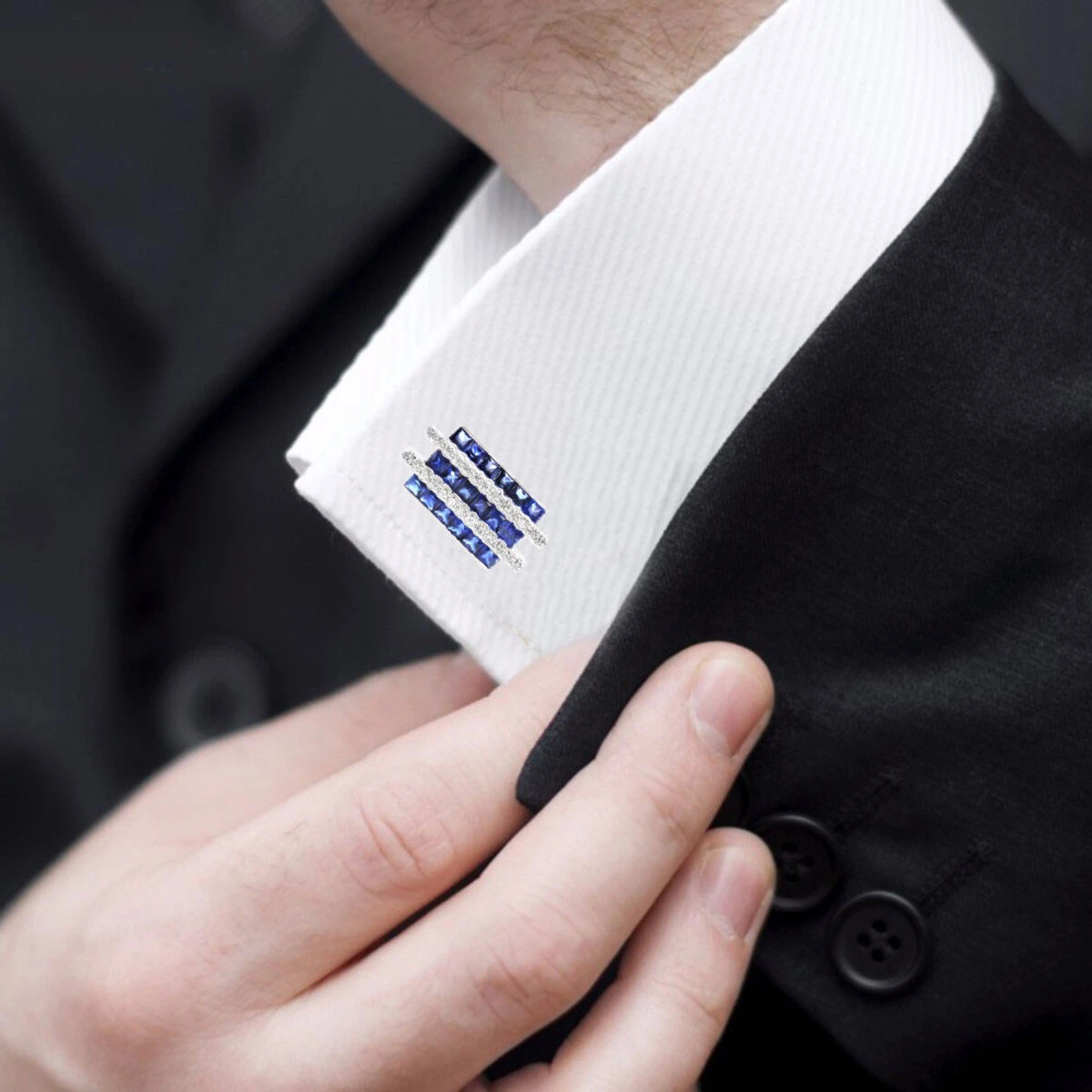 Diamond And Sapphire Cufflinks For Men 14K White Gold Unique Gift 4.5ct