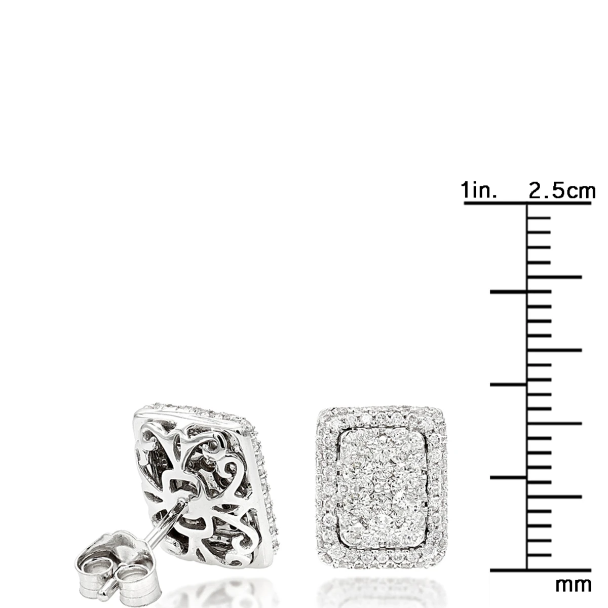 Halo 3 Carat Look Cluster Diamond Stud Earrings 1ct By Luxurman