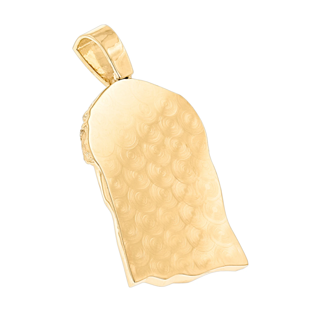 Hip Hop Jewelry Collection: this 14K Gold Round Diamond Jesus Head Pendant features 3.5 carats of sparkling round diamonds, each masterfully pave or bezel set in a lustrous gold frame. Showcasing an intricate design, a highly polished gold finish, and a fine closed back, this men’s diamond Jesus face pendant is available in 14K white, yellow and rose gold. You also can personalize this piece or check we’ve already made and create your own design.