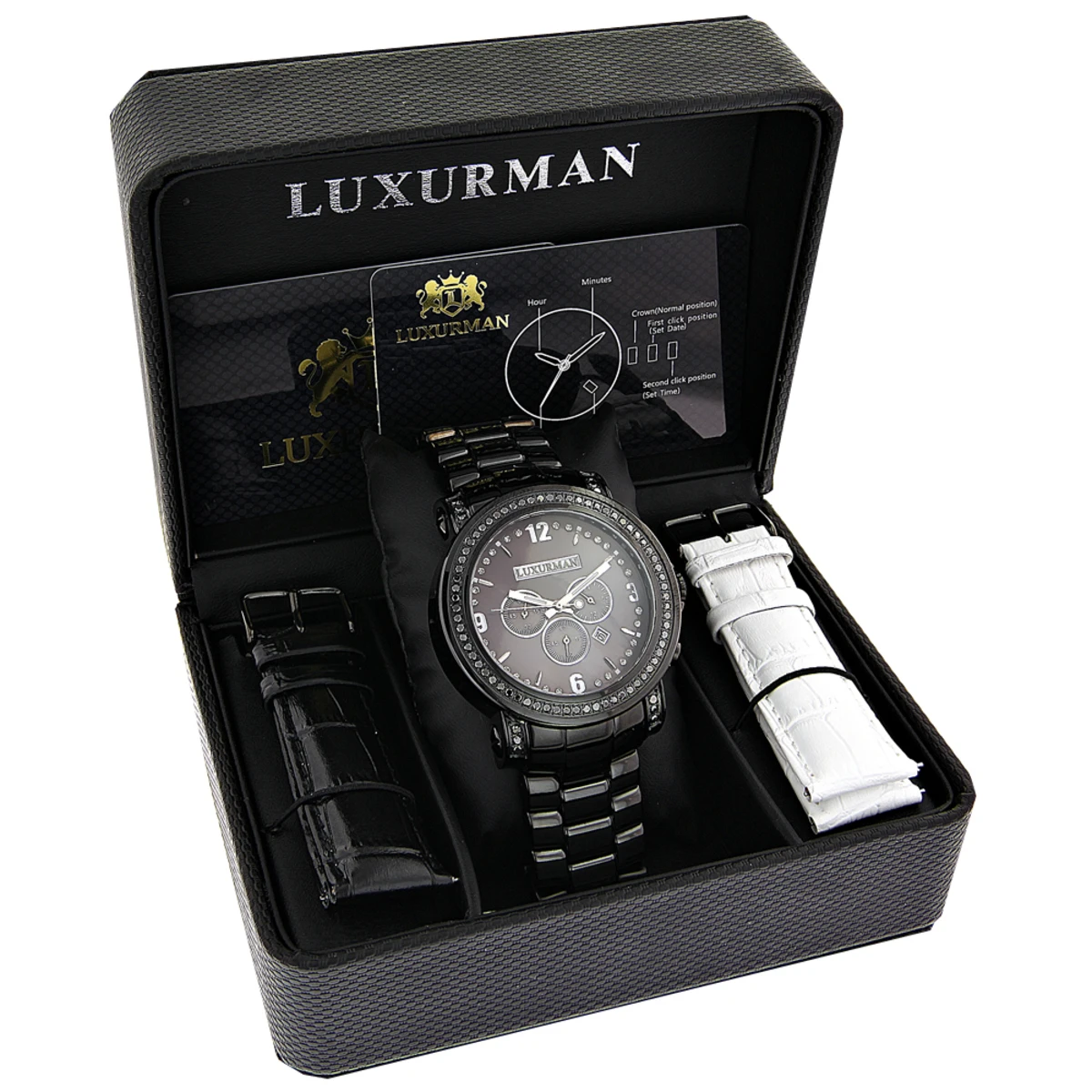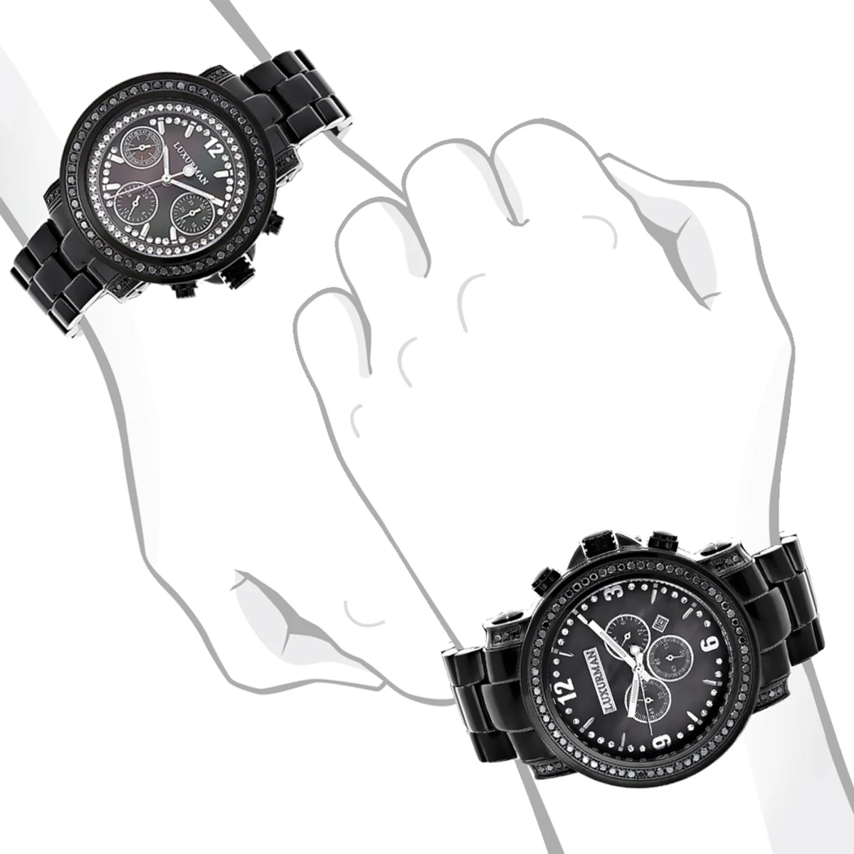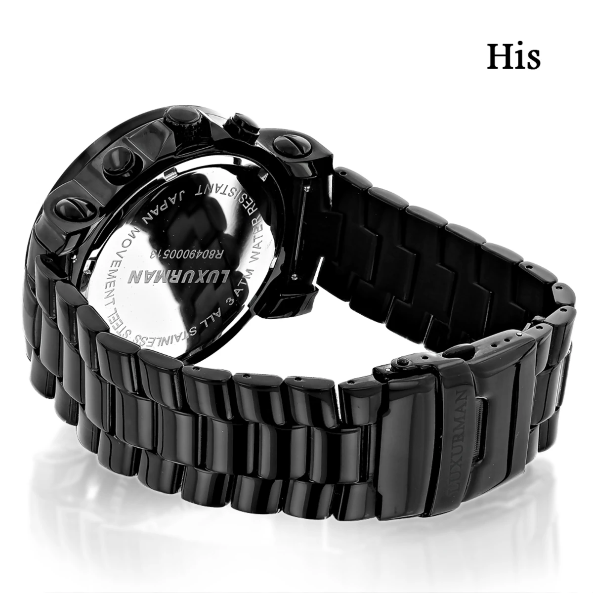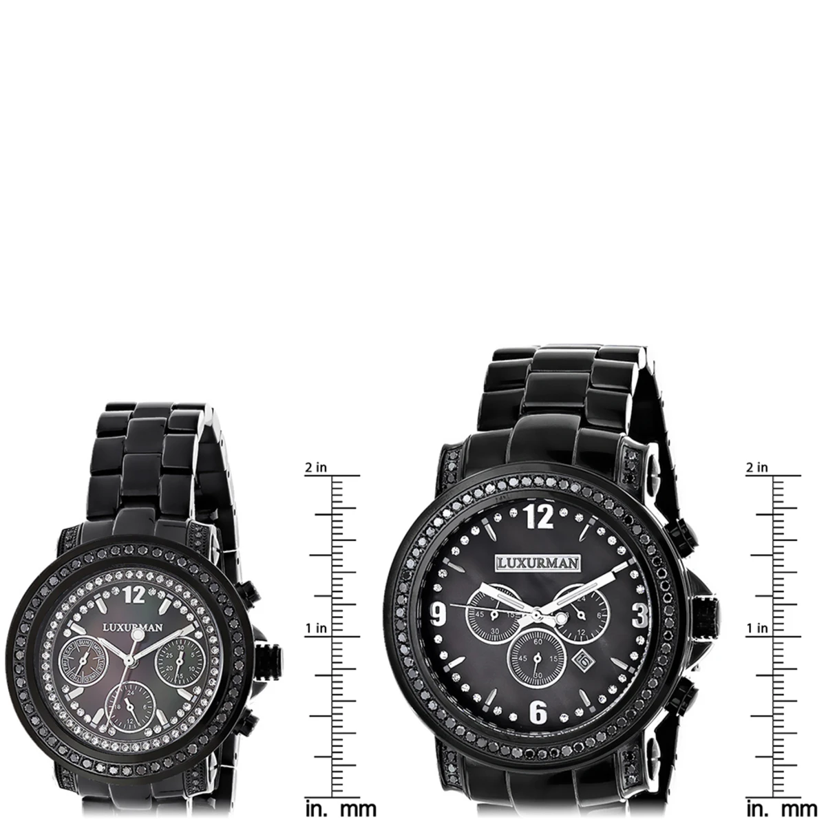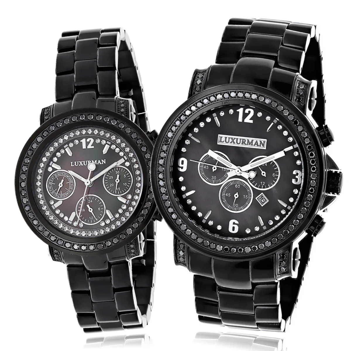 His And Hers Oversized Black Diamond Watch Set By Luxurman 5.15ct