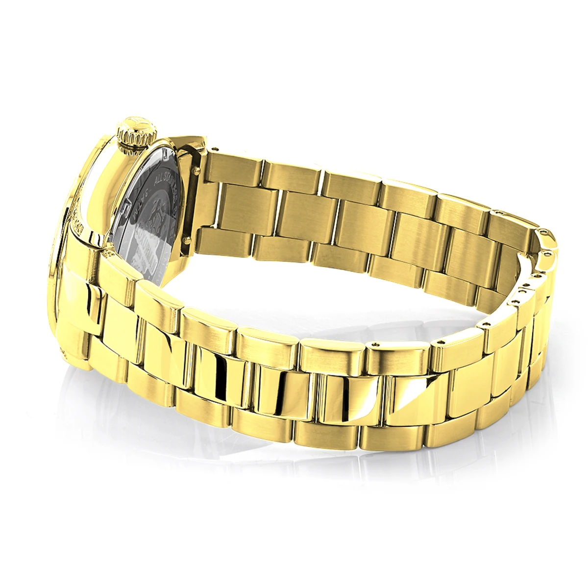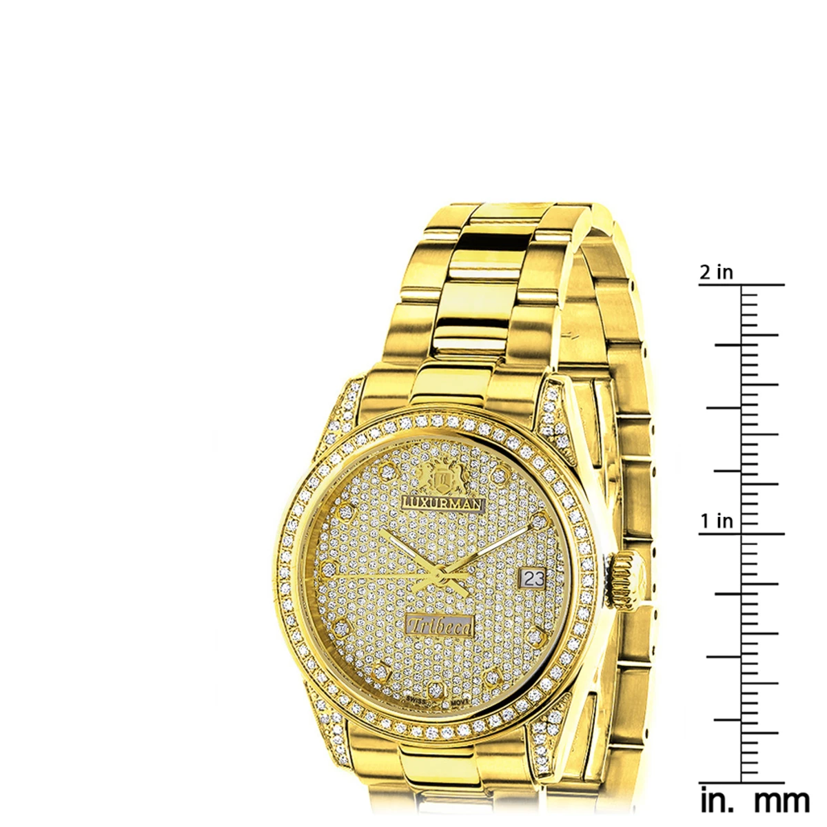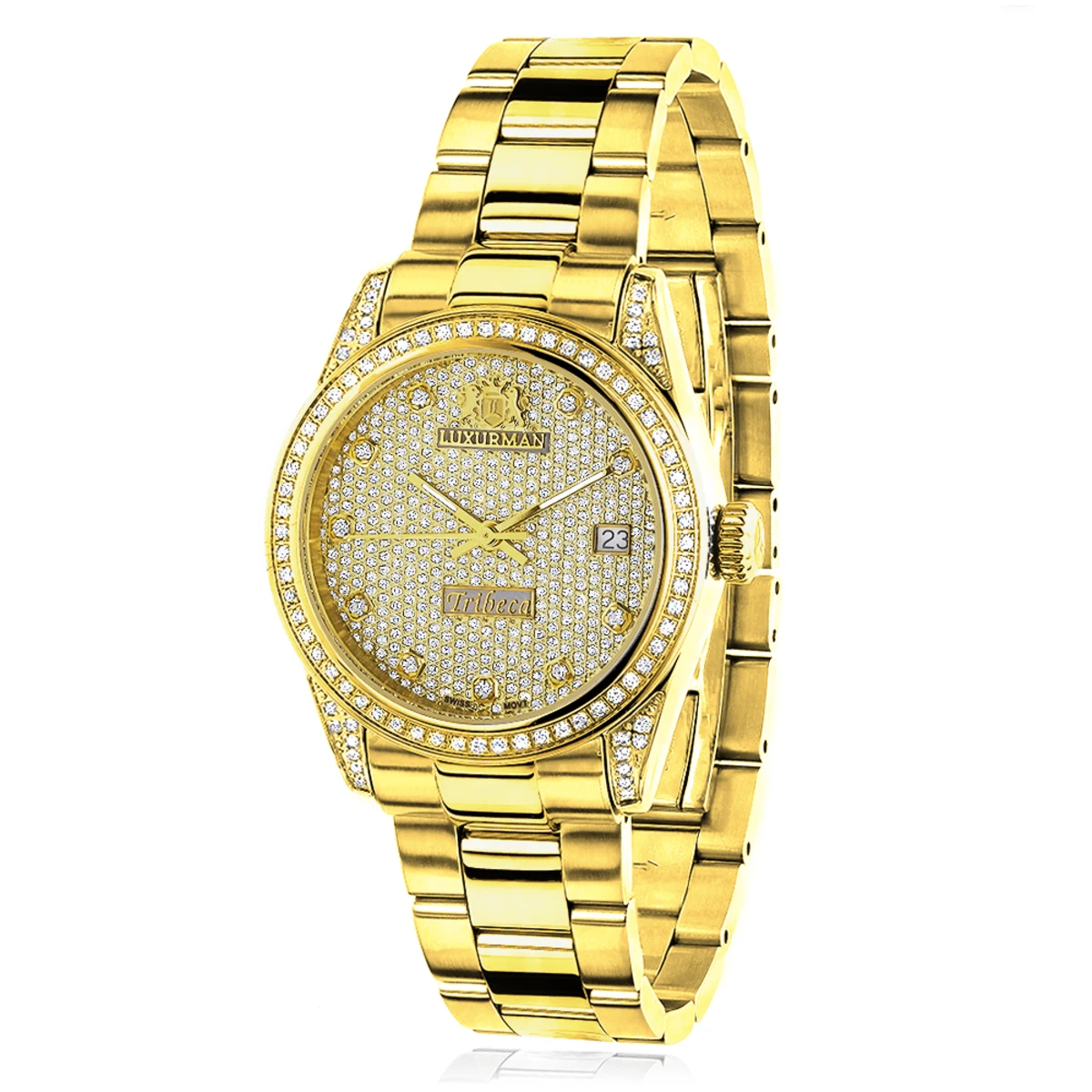Iced Out Luxurman Ladies Diamond Yellow Gold Plated Watch 1.5ct Tribeca