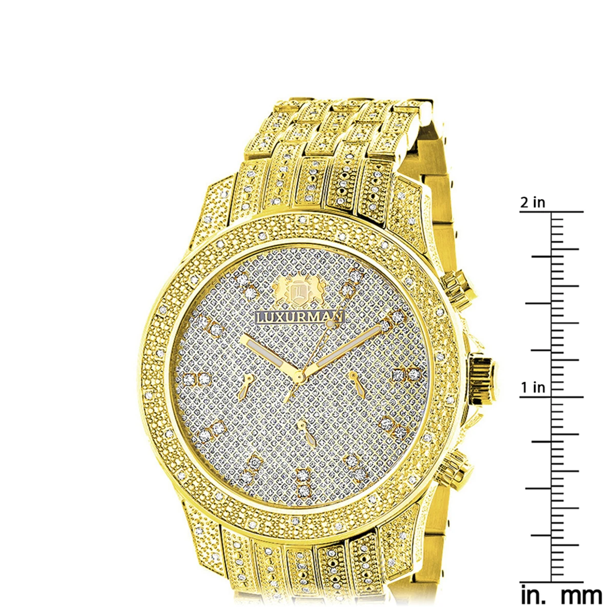 Iced Out Men’s Diamond Luxurman Watch 1.25ct Yellow Gold Tone