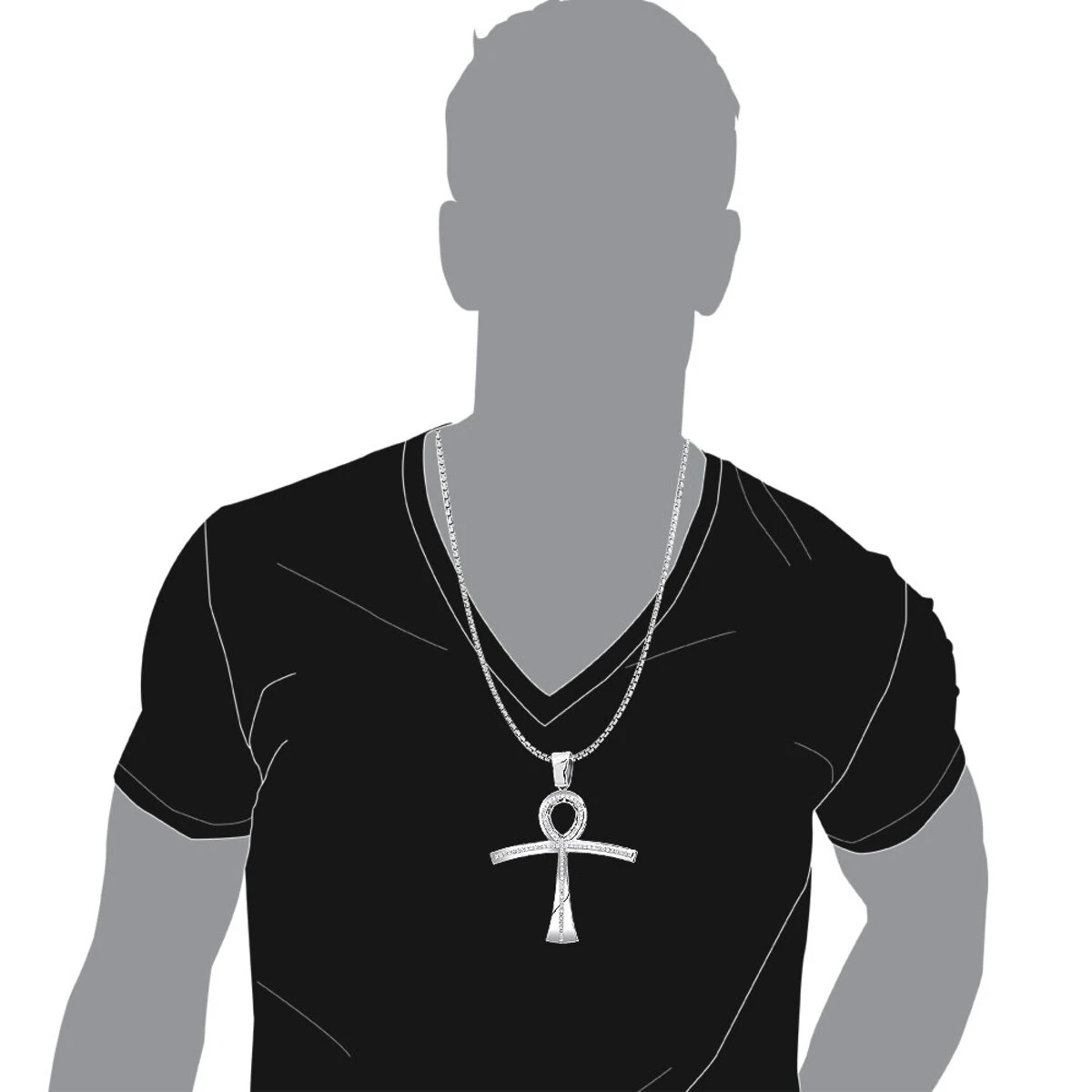 Large Symbol Of Life Egyptian Ankh Diamond Cross Pendant 14K White Gold 2.5ct
