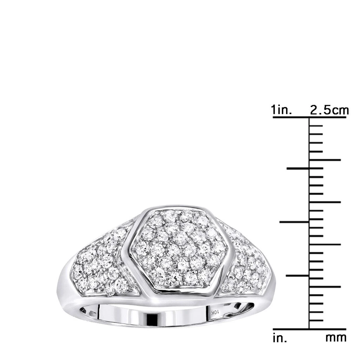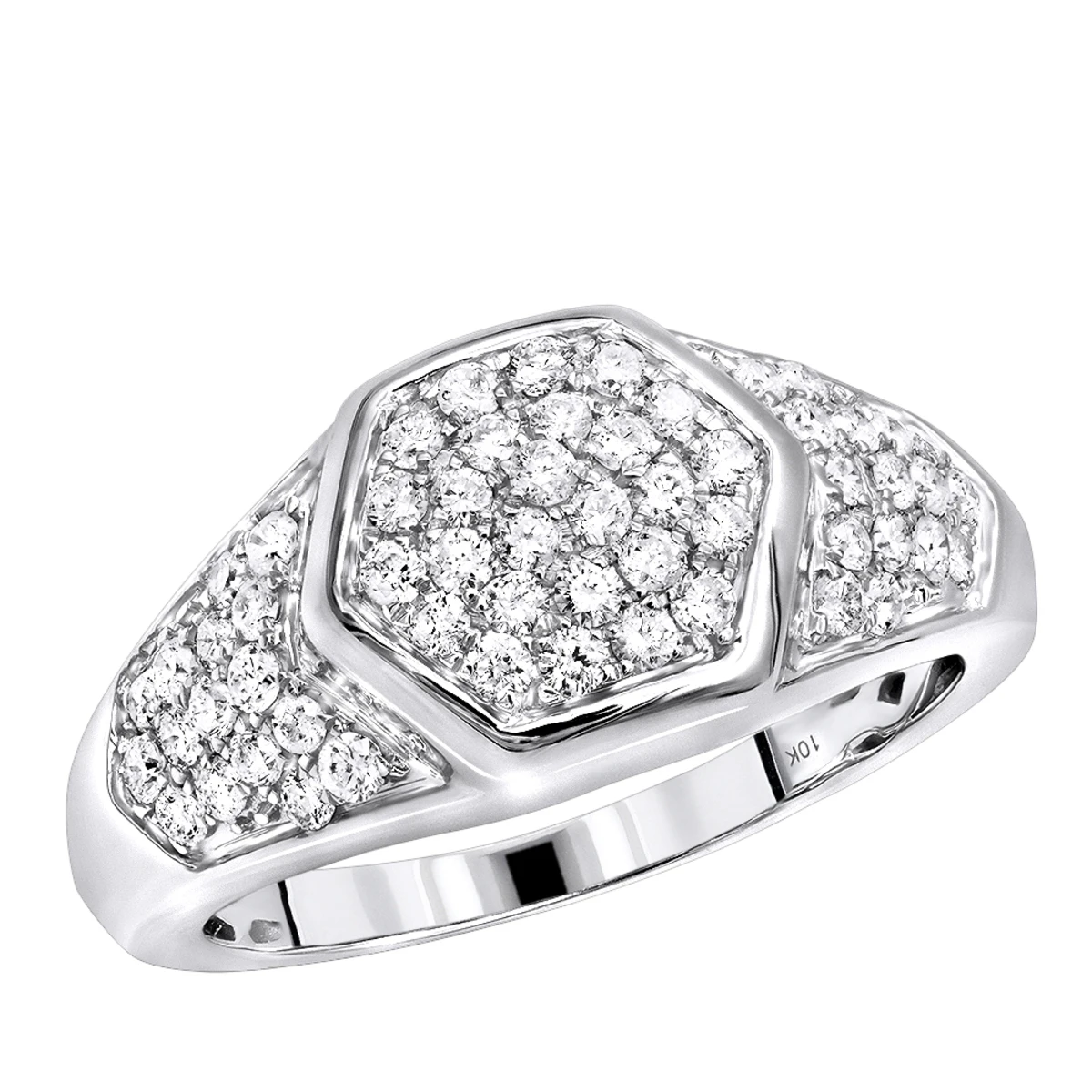 Unique Luxurman Diamond Rings for Men: This solid 10k gold men’s diamond ring features a unique octagonal shape design on the top and is decorated with 1.1 carats of genuine pave set round diamonds, this ring makes a unique diamond wedding band or a pinky ring and is available in 10k white gold, yellow gold and rose gold. This versatile diamond ring makes a great present!