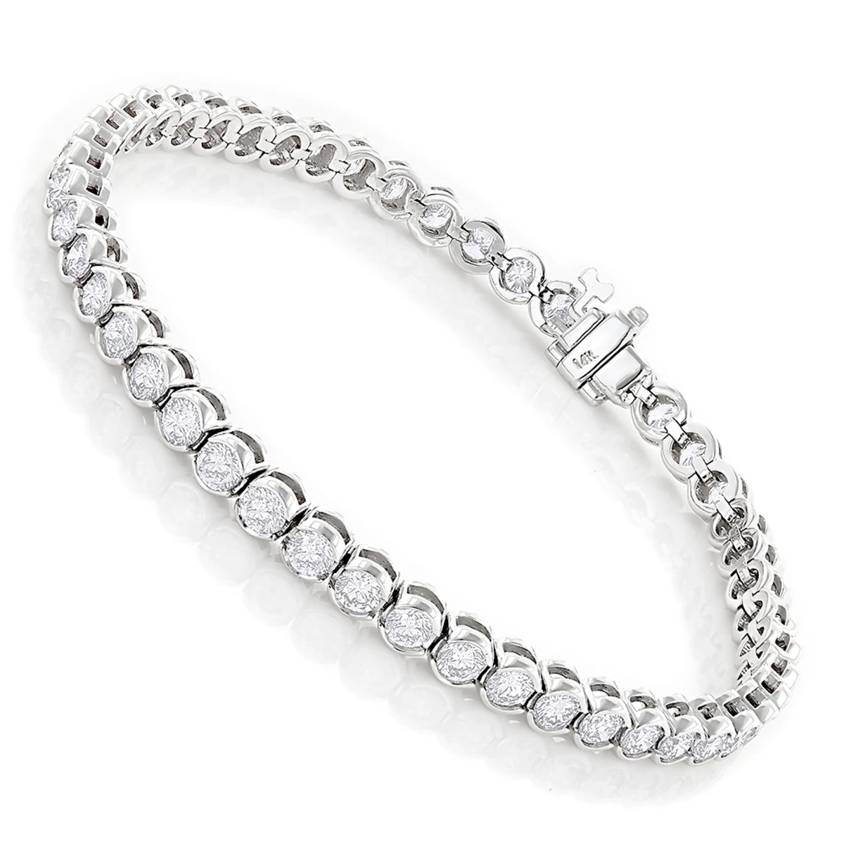 Luxurman 14K White Gold Round Diamond Tennis Bracelet Half Bezel Setting 6ct