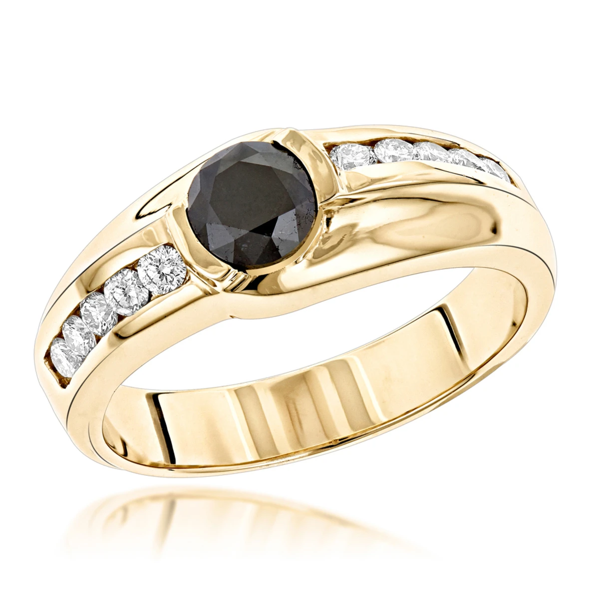 Luxurman 14K Yellow Gold White & Black 1.5 Carat Diamond Pinky Ring For Men