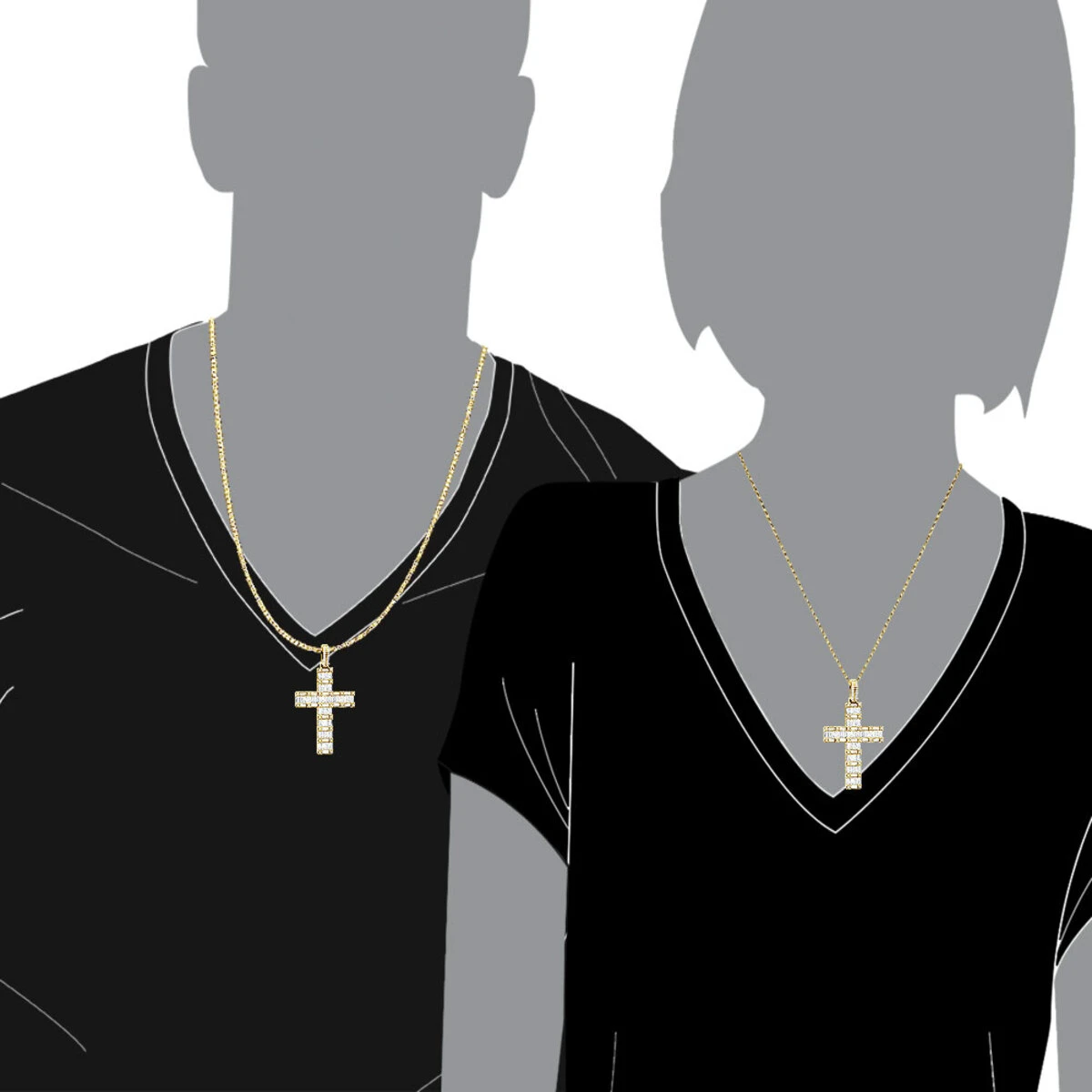 Luxurman 4 Carat Round & Baguette Diamond Cross Pendant For Men 14K Yellow Gold