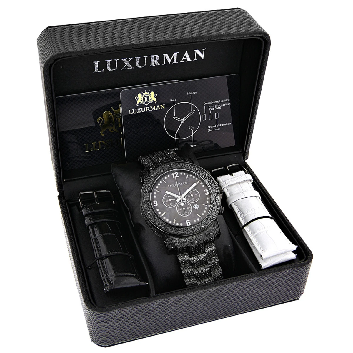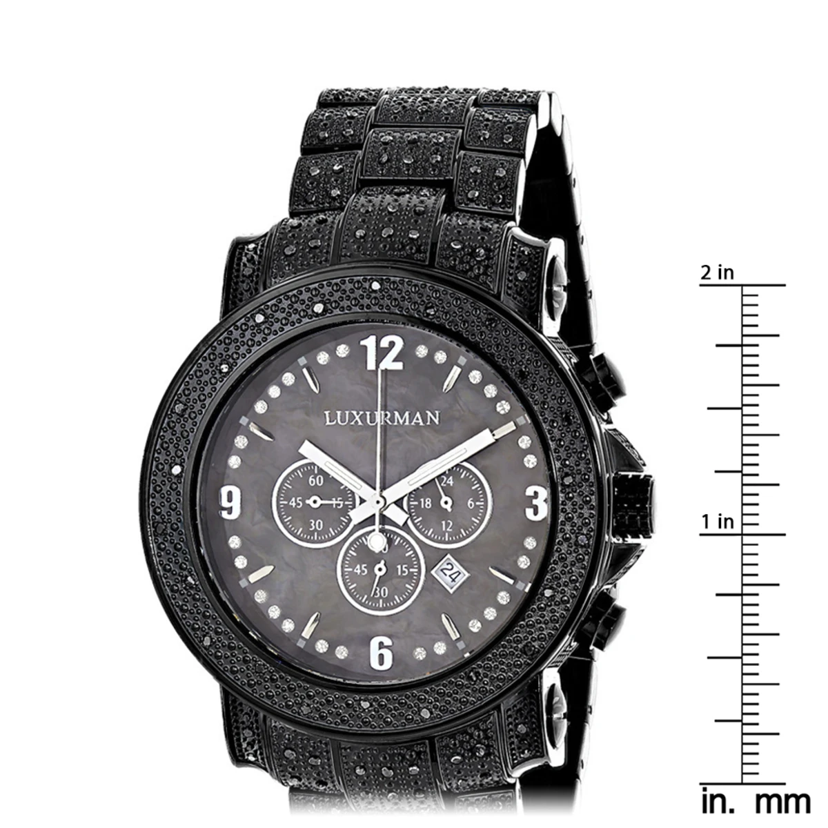 Luxurman Black Diamond Watch For Men 2ct Fully Iced Out Oversized