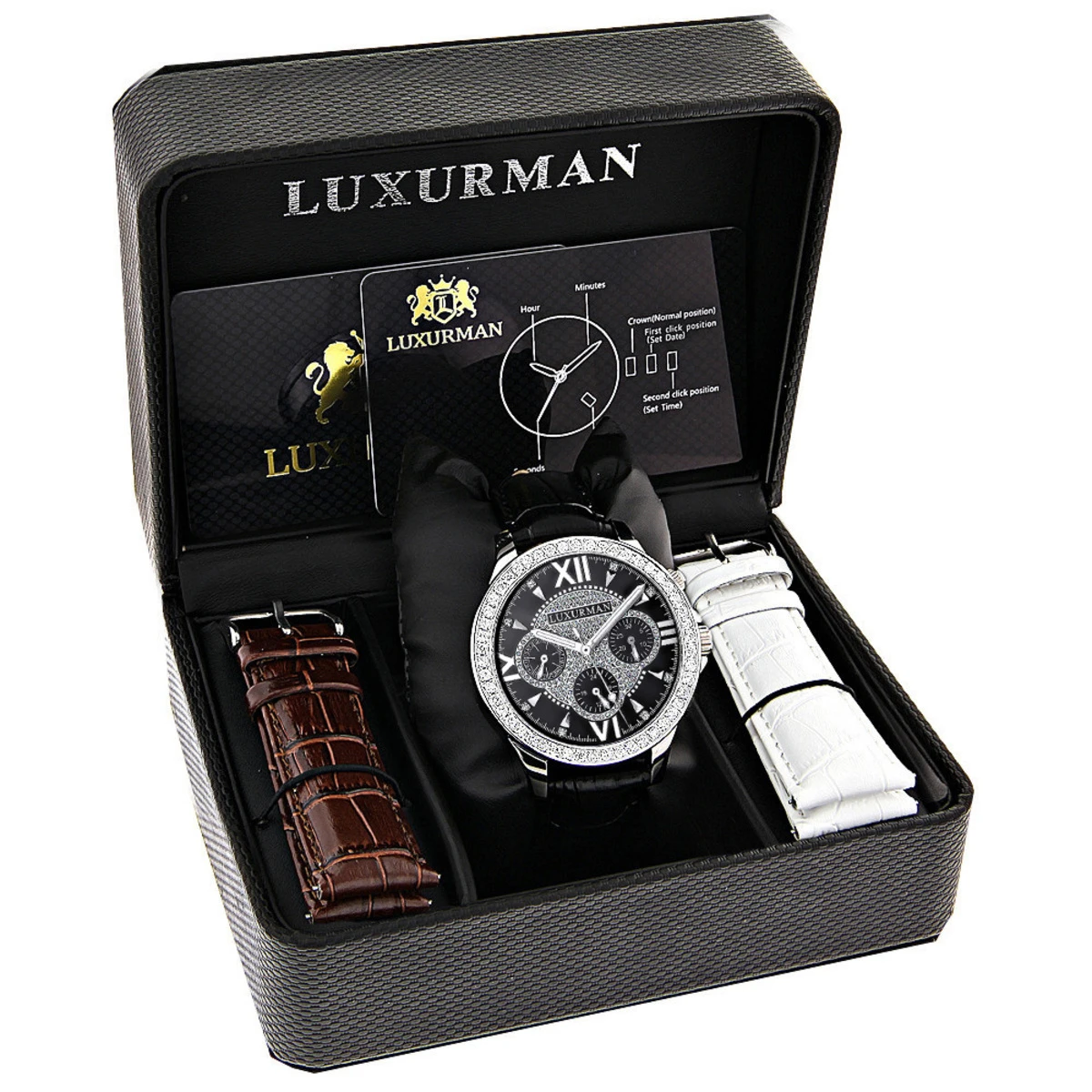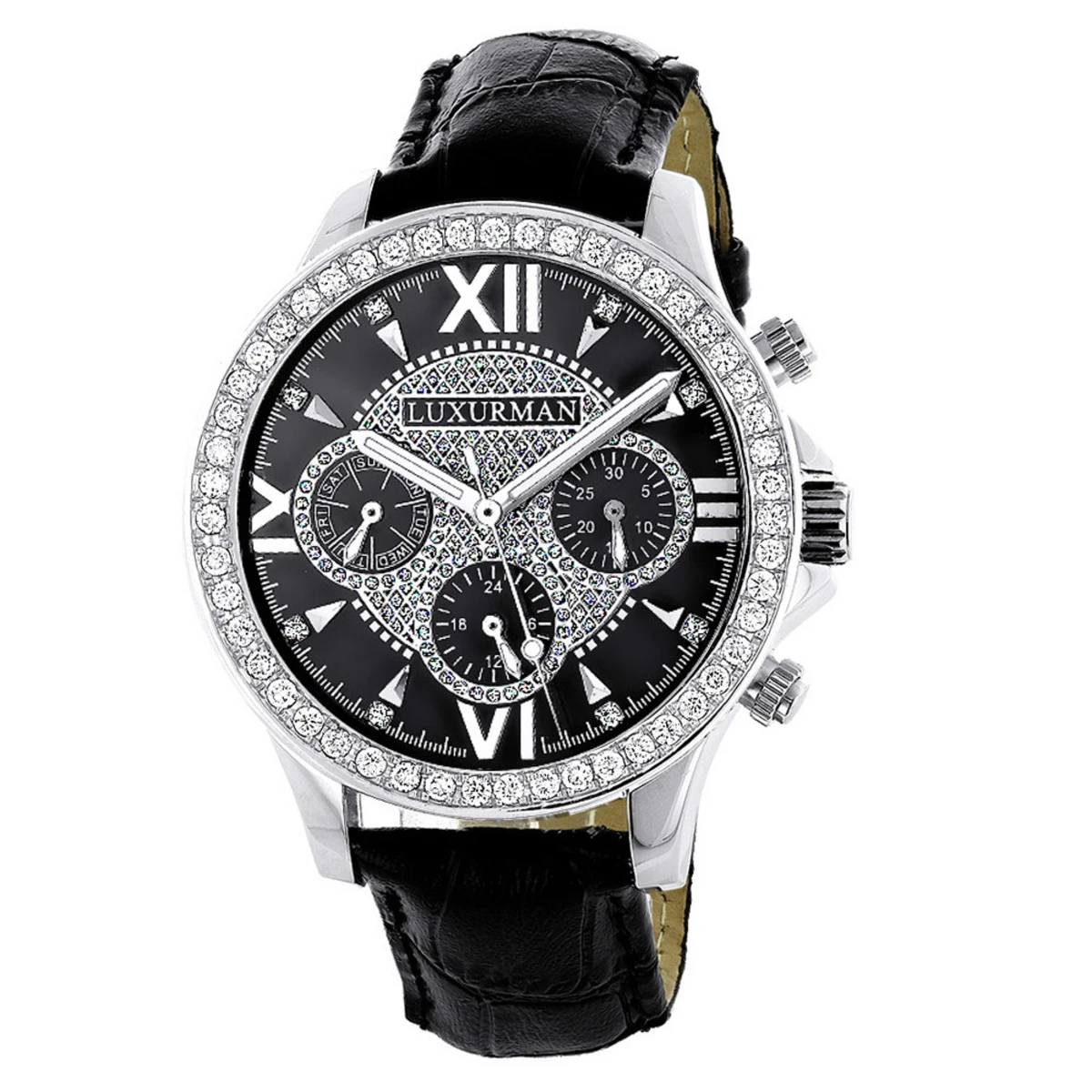 Luxurman Liberty Men’s Diamond Watch Black Dial Swiss MVT Leather Band 3ct