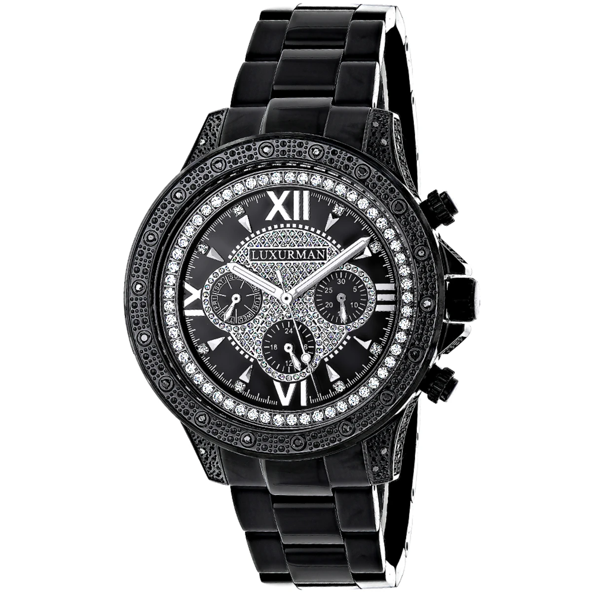 Luxurman Escalade Men’s Black Diamond Watch Oversized Chronograph 4.75ct