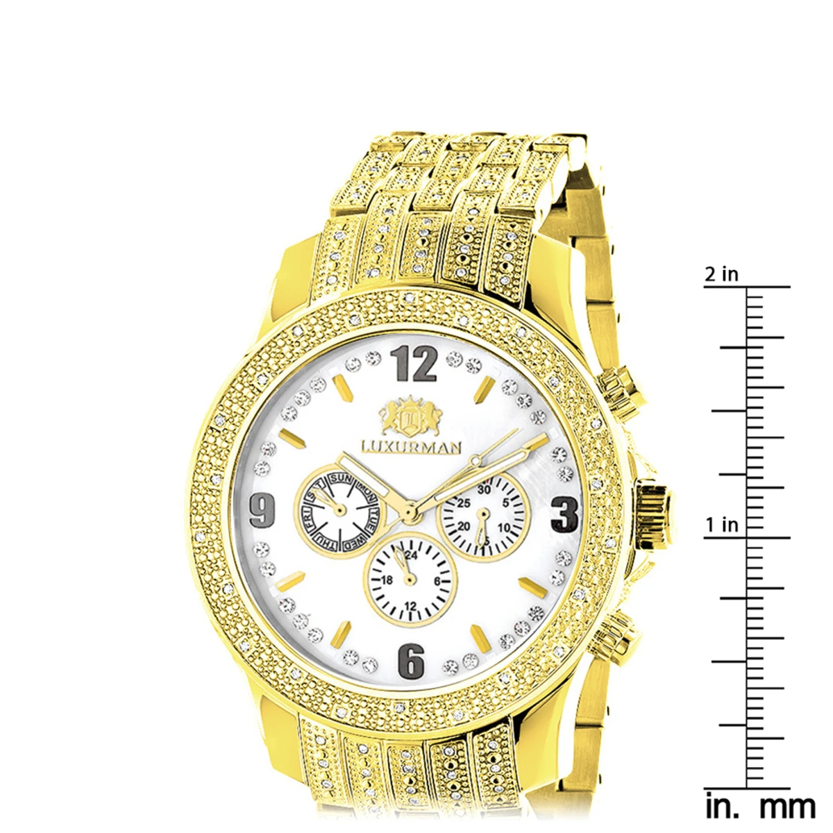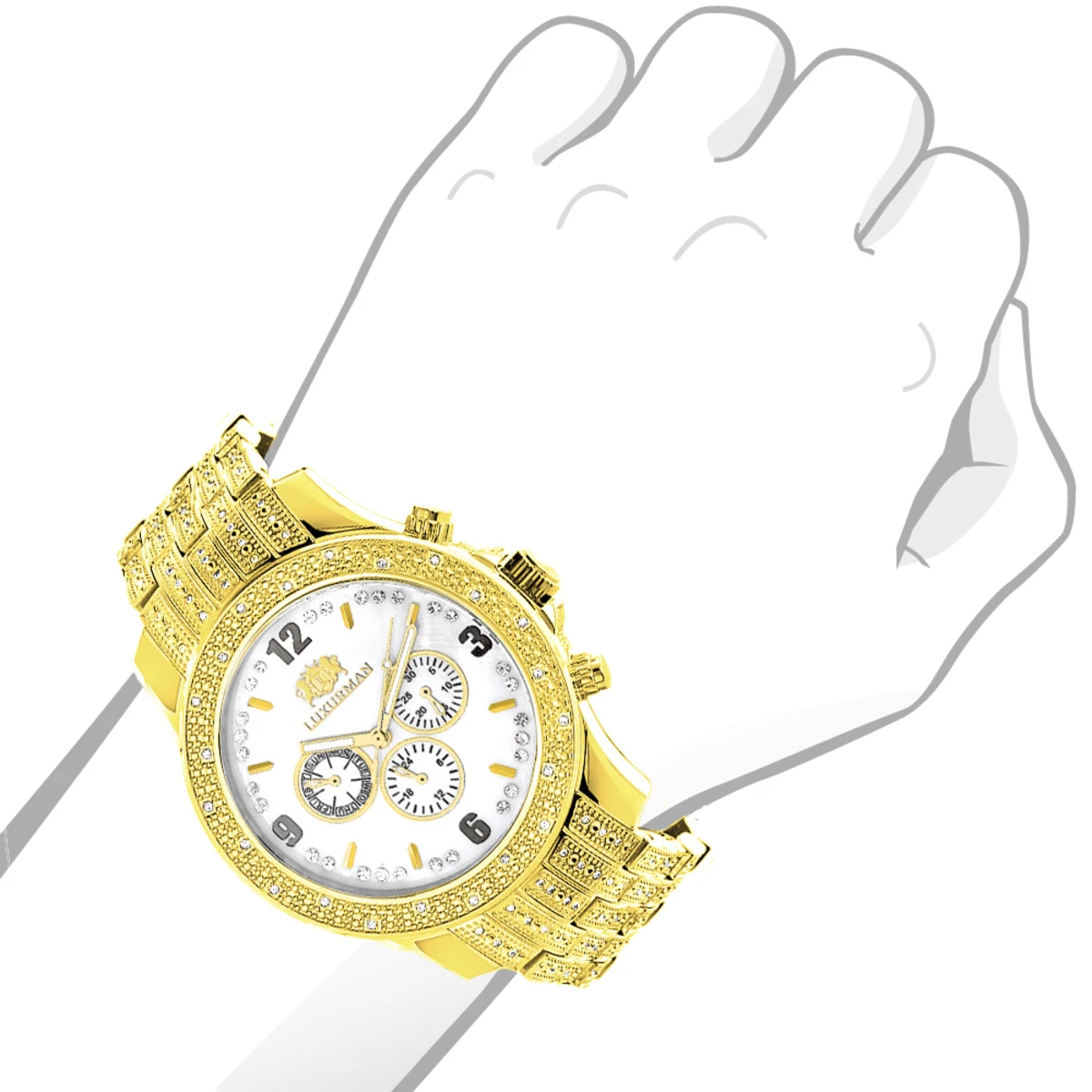 Iced Out Men’s Diamond Luxurman Watch 1.25ct Yellow Gold Tone