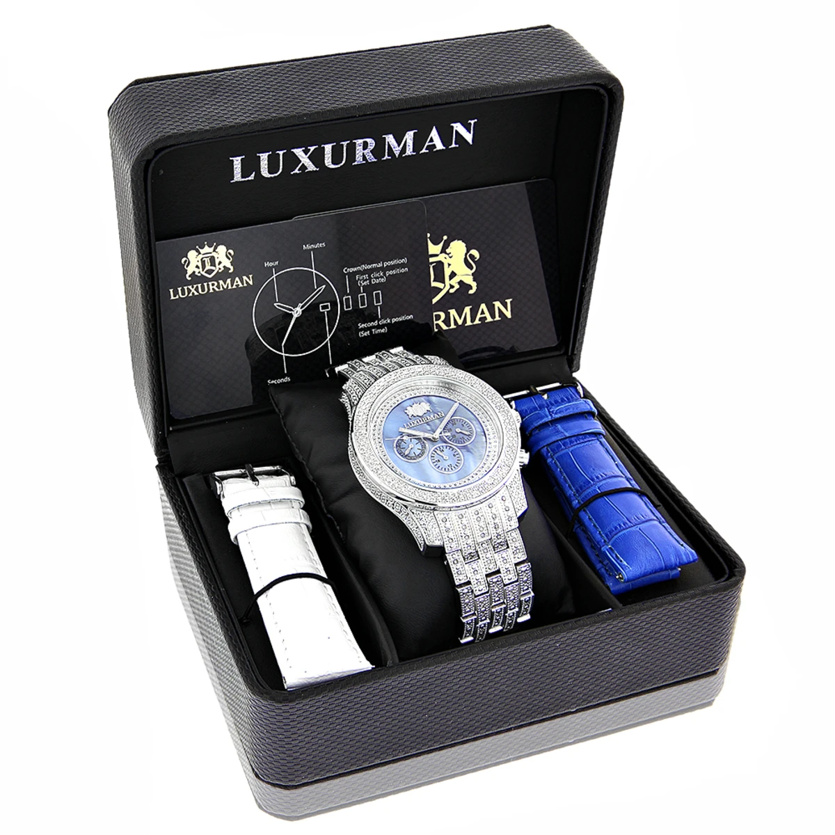Men’s Diamond Fully Iced Out Watch 1.25ct Luxurman Liberty Swiss Mvt