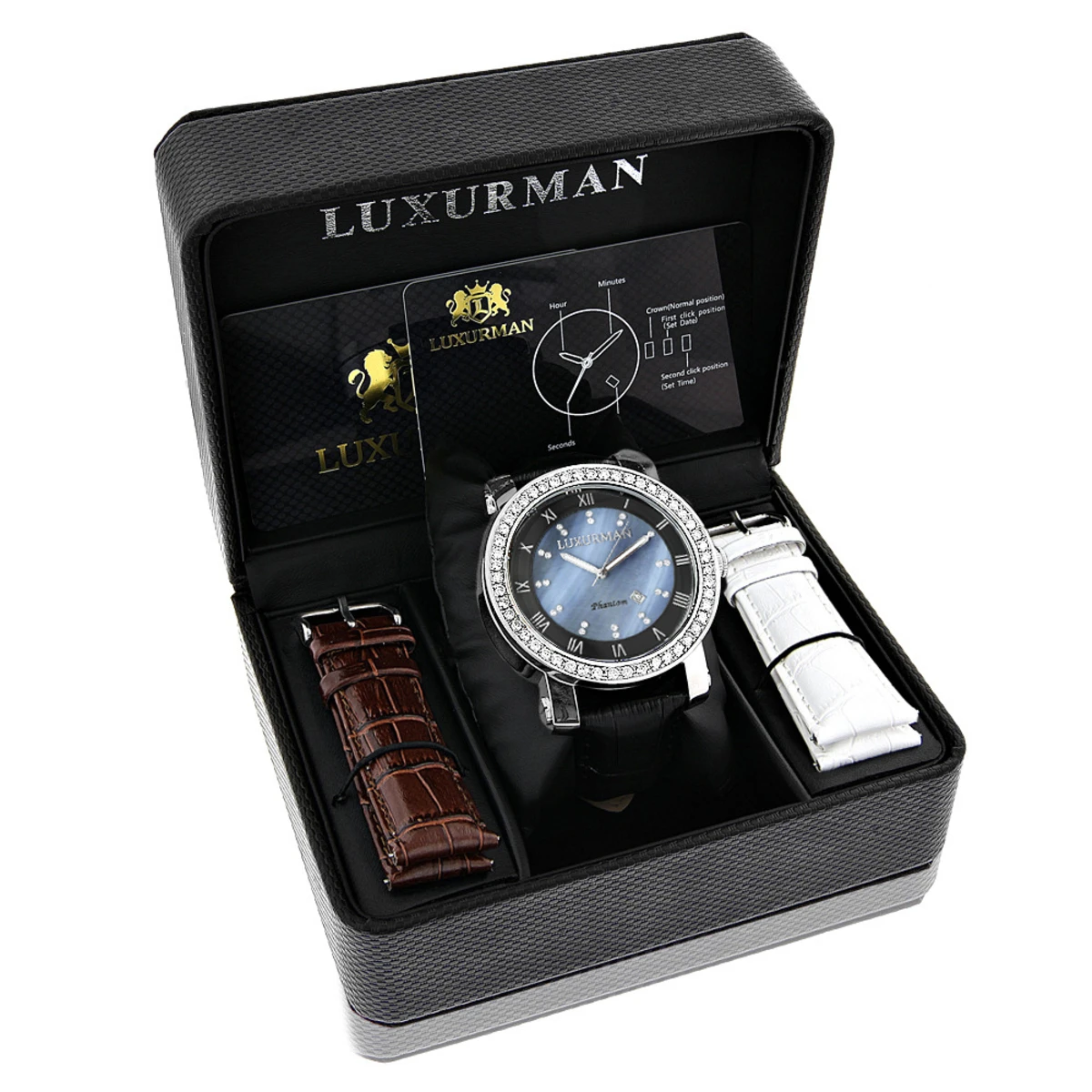Luxurman Men’s VS Diamond Bezel Watch 4 Ct Blue MOP