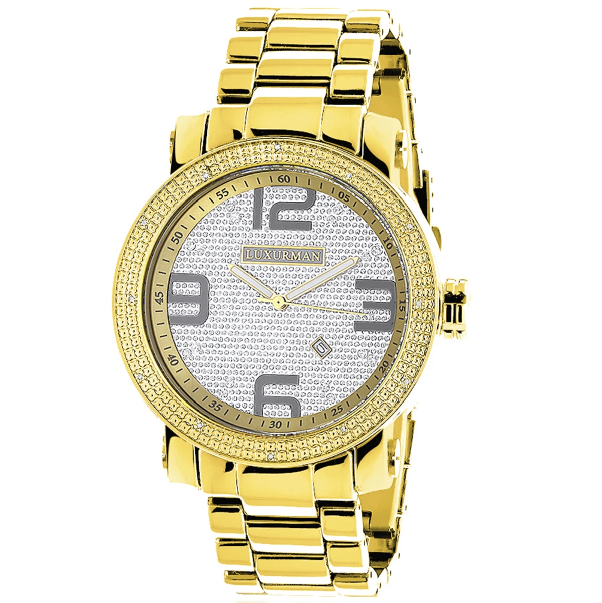 Luxurman Men’s Yellow Gold Plated Encrusted Dial 0.12ct Diamond Bezel Watch