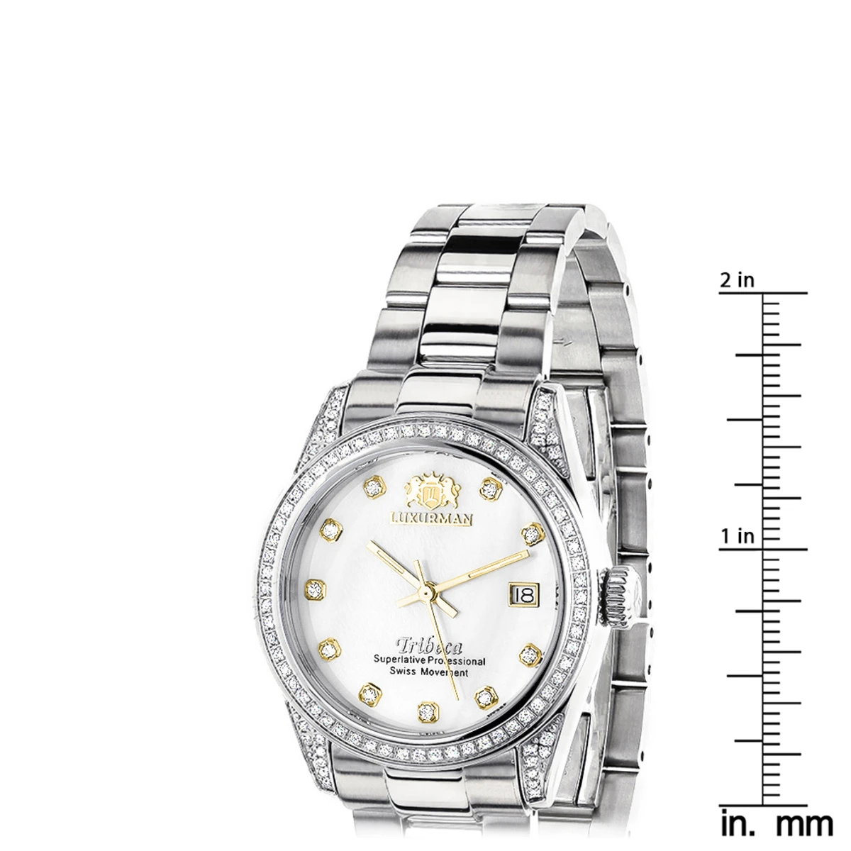 Luxurman Women’s Diamond Watch Stainless Steel Tribeca 1.5ct