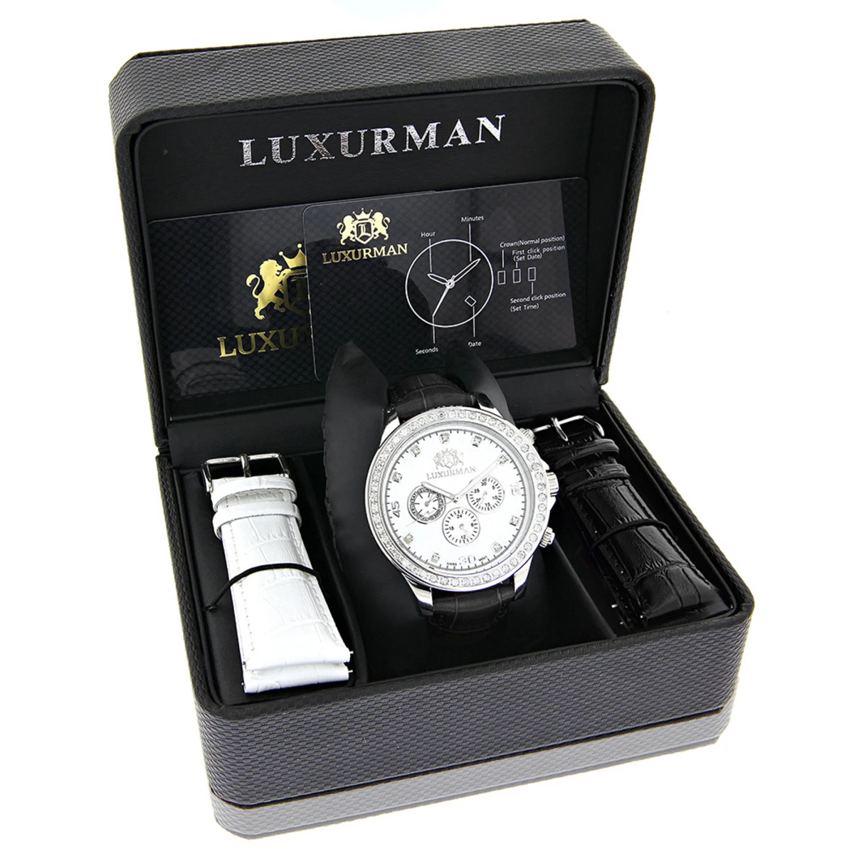 Men’s Diamond Fully Iced Out Watch 1.25ct Luxurman Liberty Swiss Mvt