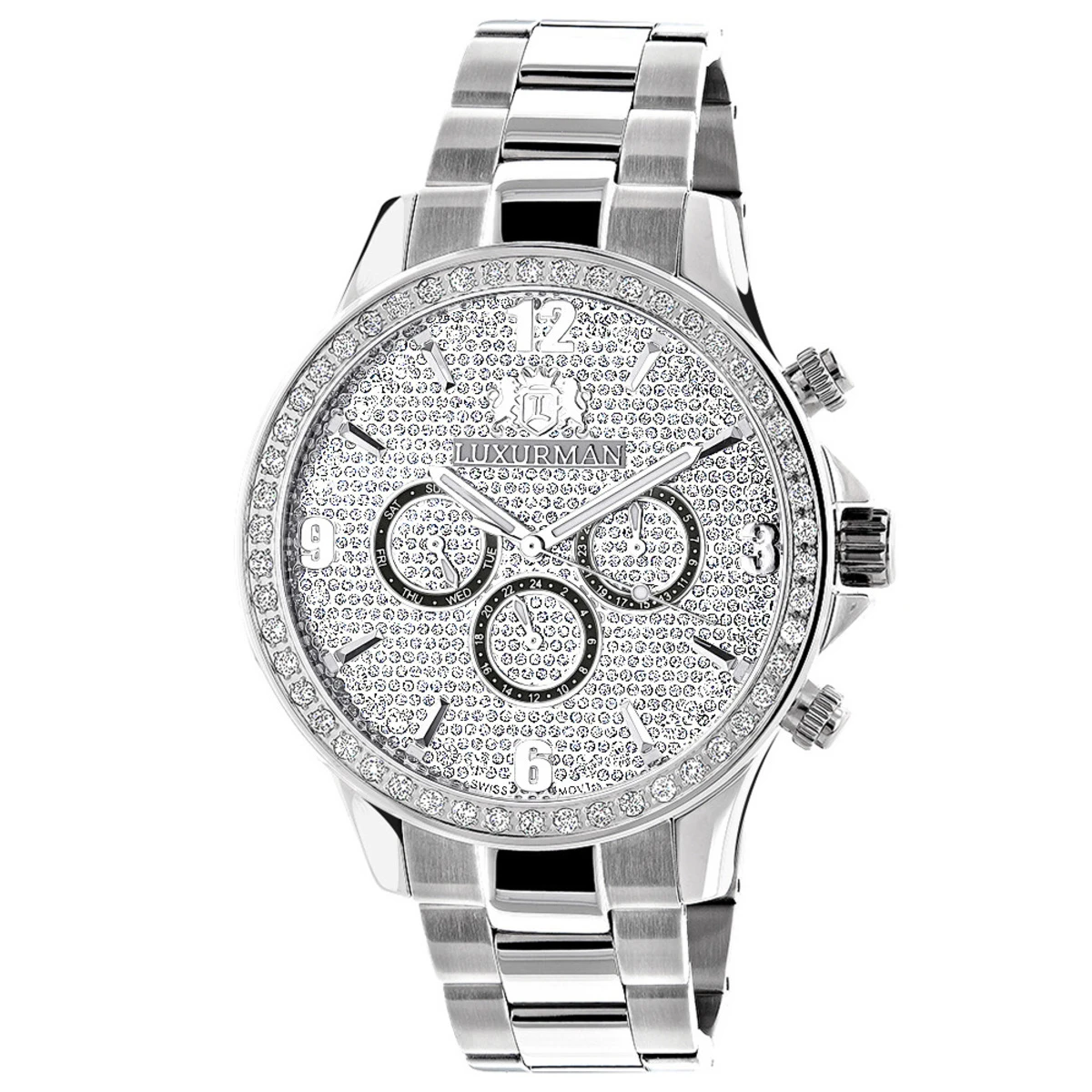 Men’s Diamond Watch 2ct By Luxurman White Gold Plated