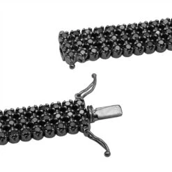 10K Black Plated Gold 3 Row Black Diamond Tennis Bracelet For Men 10 Carats