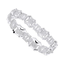 Luxurman Men’s Black Diamond Cuban Link Bracelet In Sterling Silver 8mm Wide