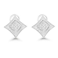 Diamond Studs 14K White Gold Cluster Diamond Stud Earrings .82ct