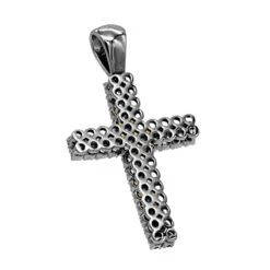White Yellow Black Diamond Cross Pendant 1.45ct 10K Black Plated Gold