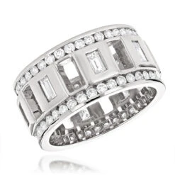 Unique 14K White Gold Men’s Diamond Wedding Band By Luxurman 0.8ct