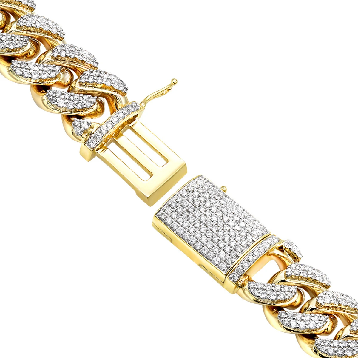 Real Diamond Miami Cuban Link Chain Bracelet For Men 10K Yellow Gold 14mm