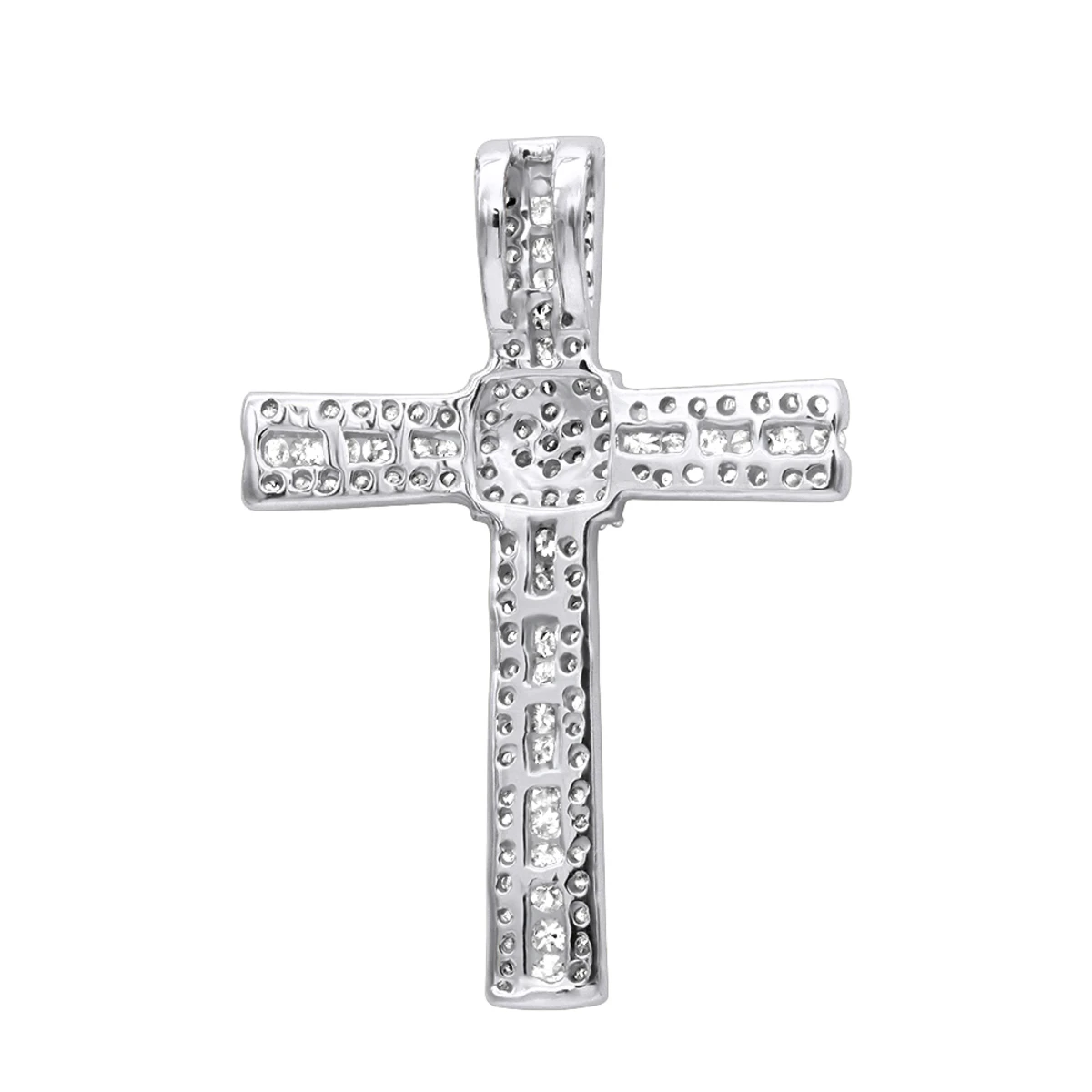 Small Iced Out Diamond Cross Pendant For Women & Men 14K White Gold 0.4ct