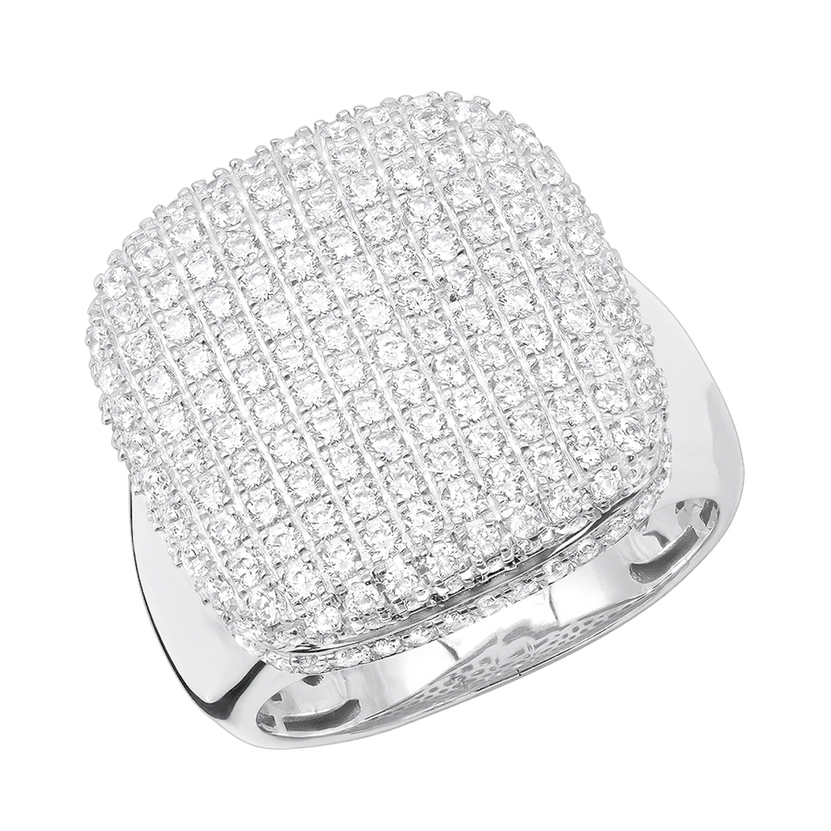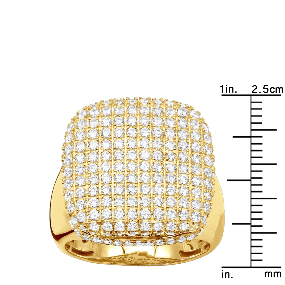 From our men’s pinky rings collection: This 10K Gold Men’s Diamond Ring by Luxurman is a true statement ring showcasing oversized royal puffed square with rounded corners design with another row of diamonds just below the rounded top, this marvelous diamond ring for men features a total of 3 carats of sparkling round cut, pave set diamonds. Featuring an extraordinary design of a tall rounded square that will surely stand out at any event, this amazing men’s diamond ring weighs approximately 13.5 grams and is impressive at nearly an inch wide 7/8in. (21mm). The separated bottom line of diamonds makes the upper part more accentuated and adds dimen’sion to the ring, while the bright polished finish of 10K Gold radiates brightly. The ring is available in 10k yellow, rose, white gold, various sizes and makes a terrific present.