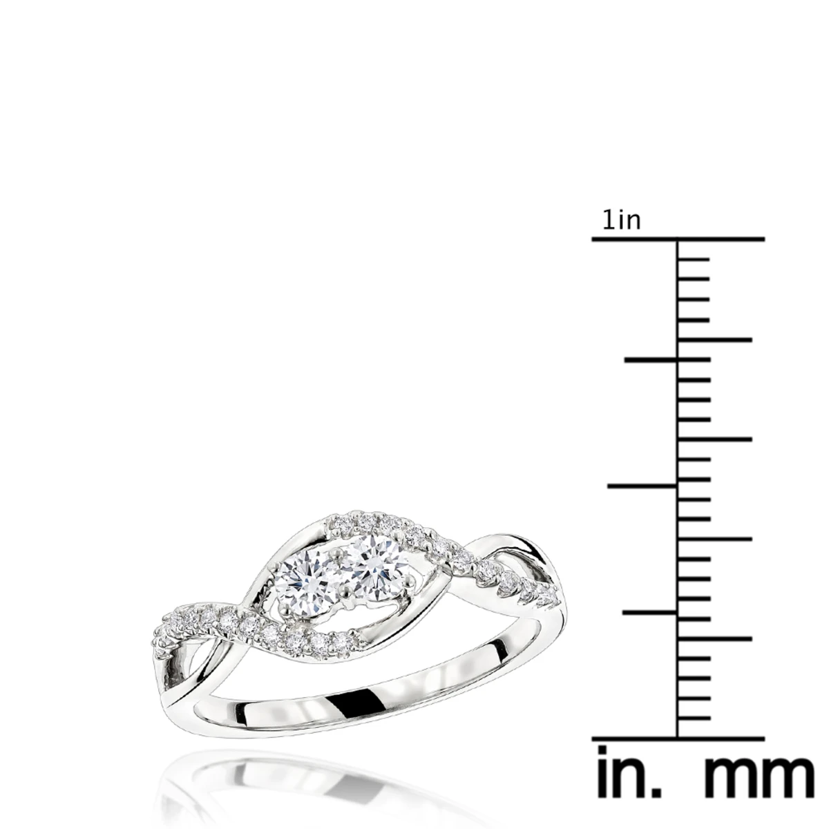Unique 14K White Gold 2 Stone Diamond Infinity Ring For Women By Luxurman 0.4ct